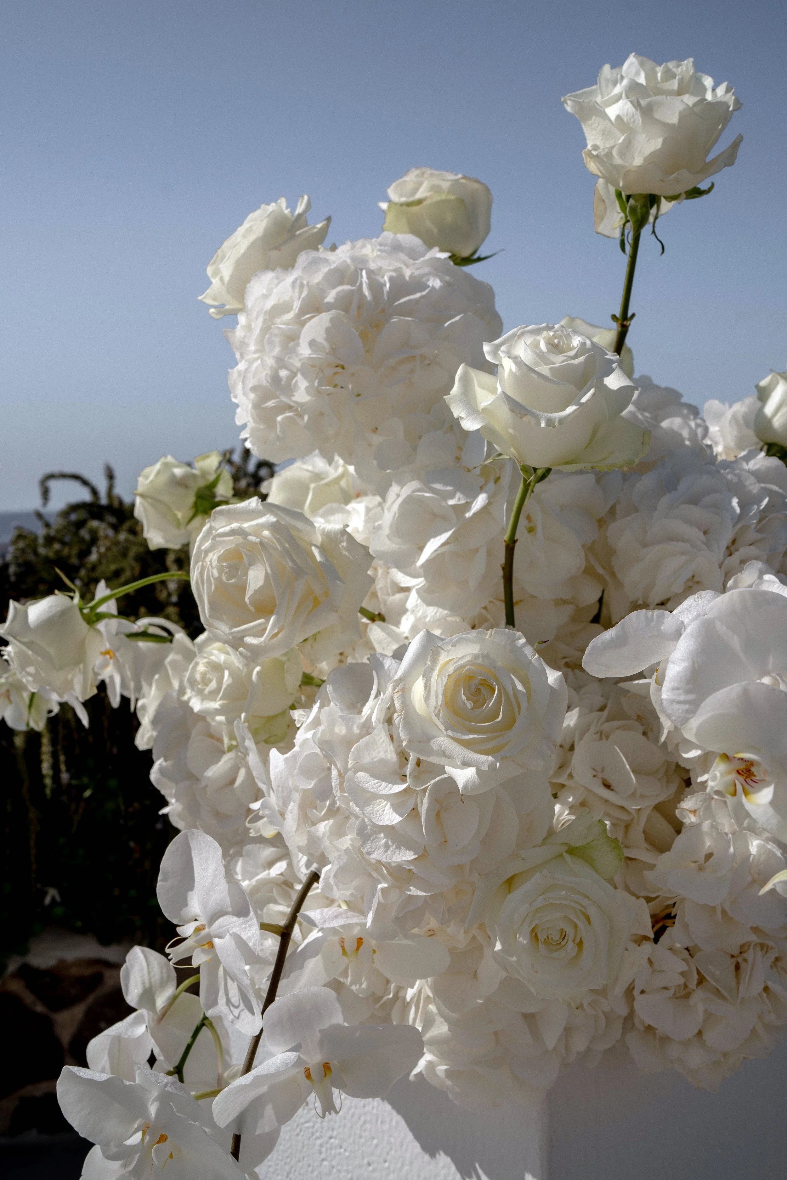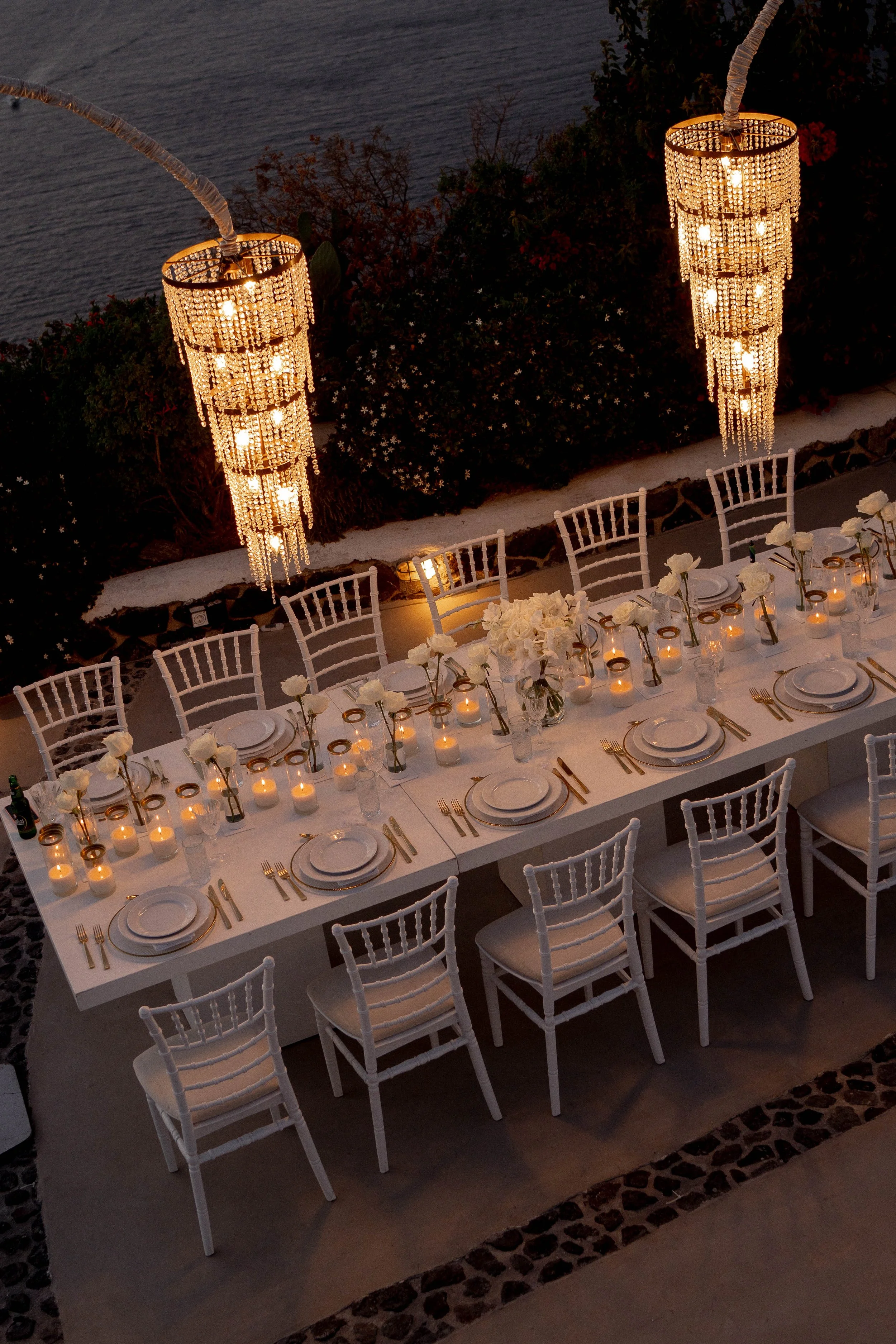 Our winery venue has the most magnificent open-air clifftop setting. We opted for simple white flowers, candles and chairs as decorations – the view was the absolute star of the show!