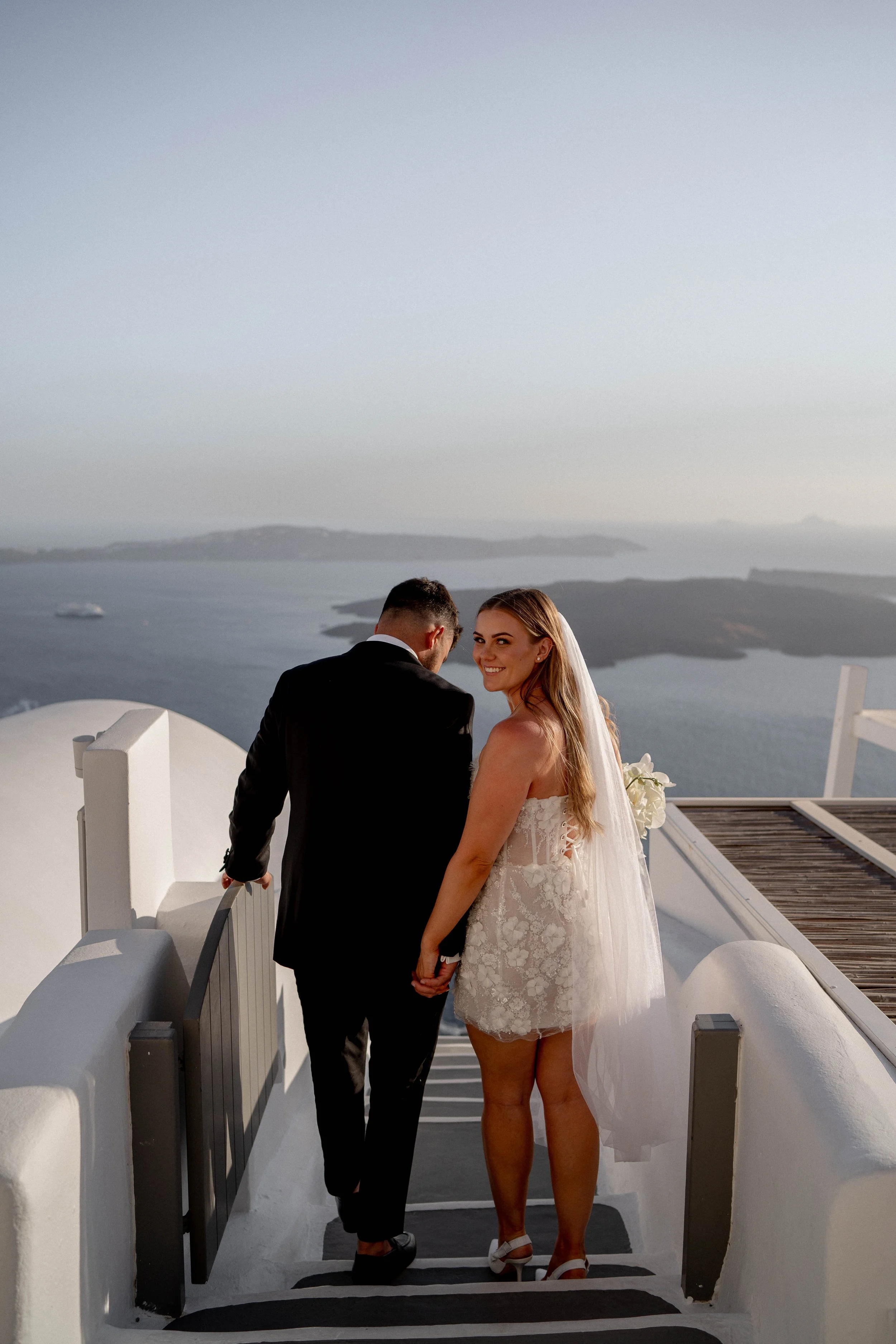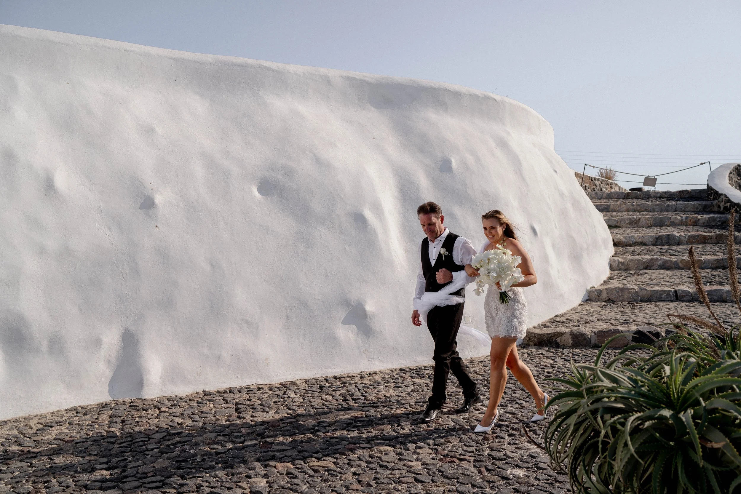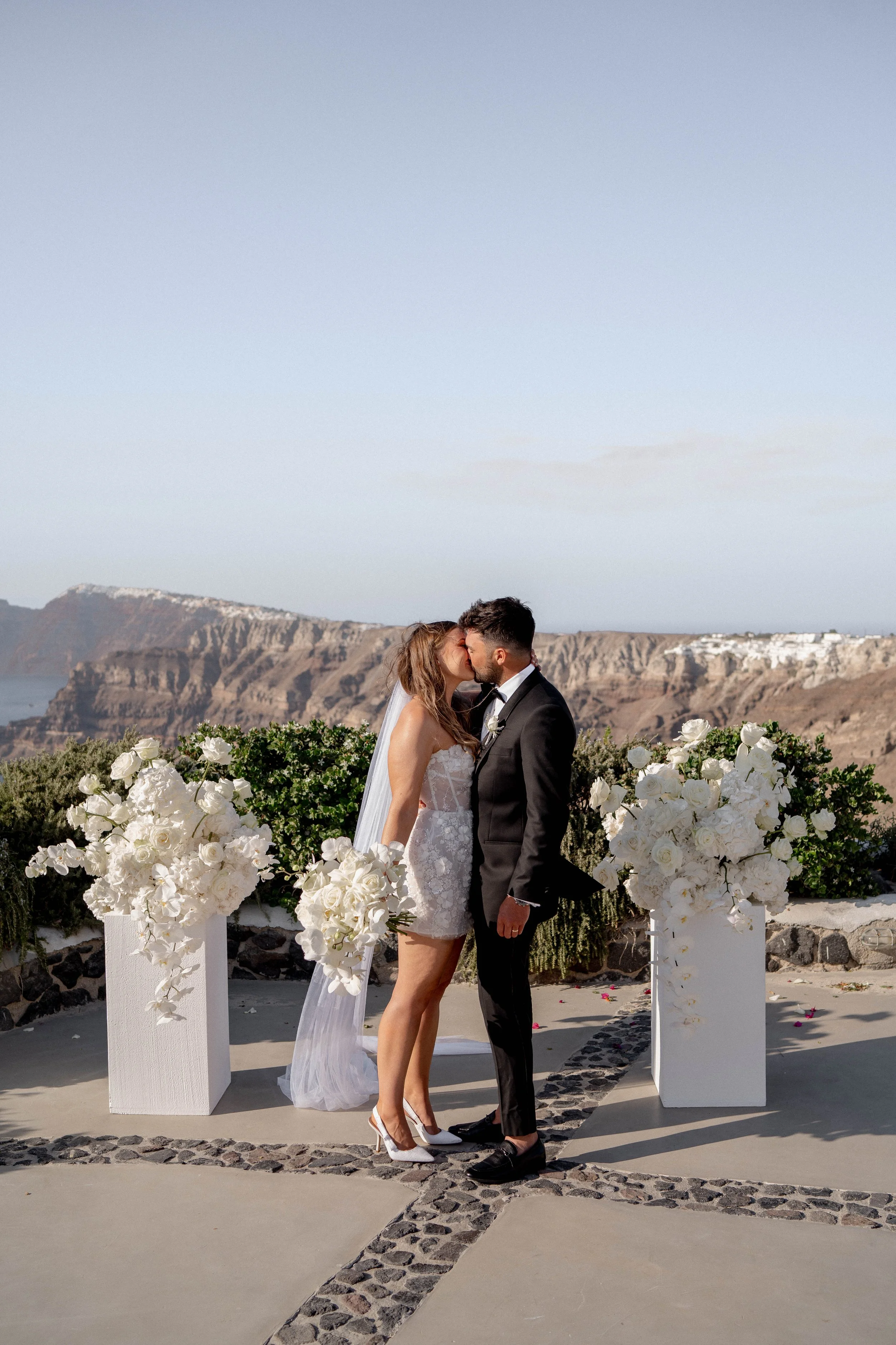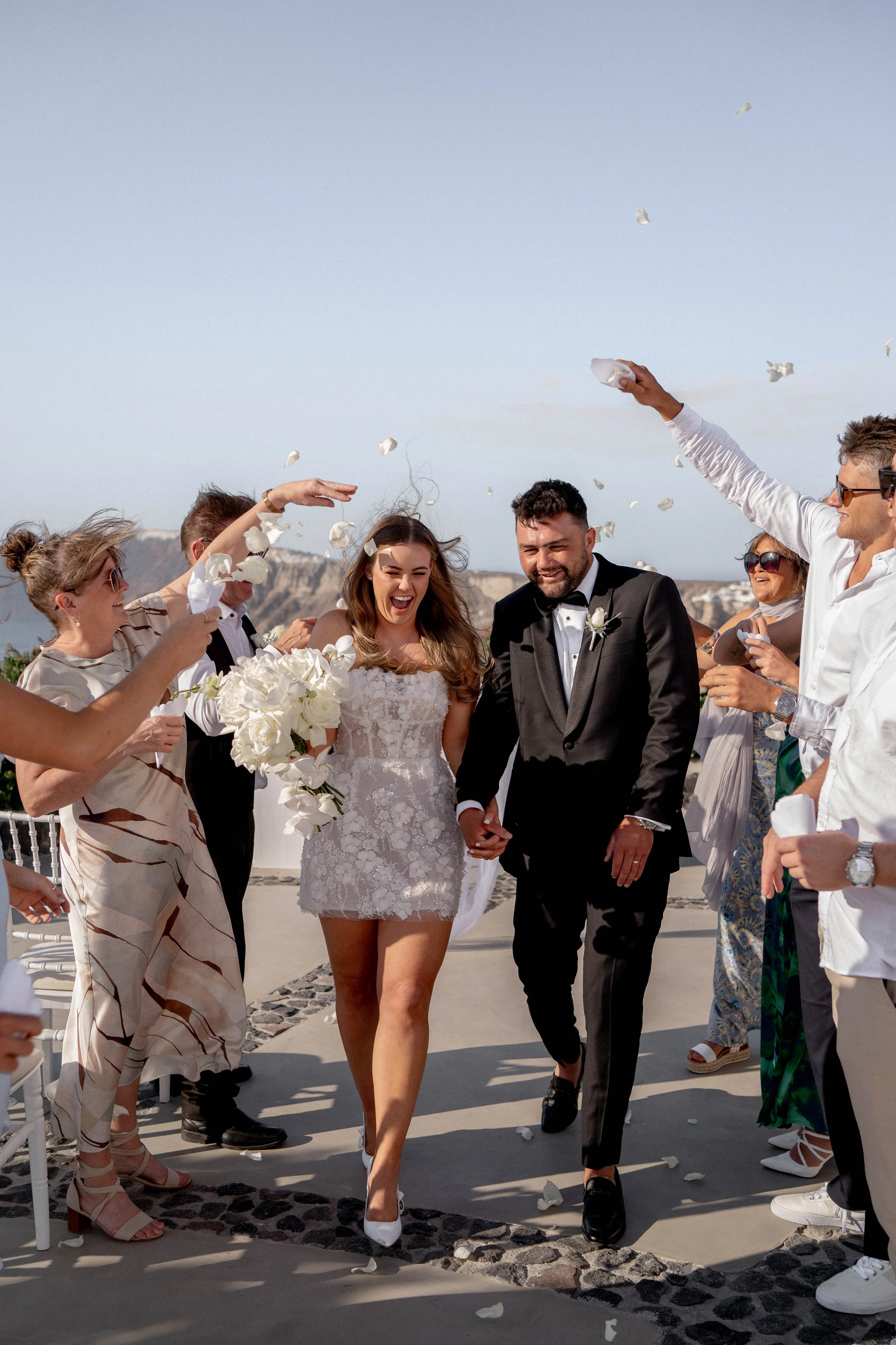 Annie and Vincent really wanted a wedding that was small, personal, and beautiful. So, they decided to turn their dream day into a destination wedding and tie the knot on the beautiful island of Santorini in Greece! They planned a relaxed and romantic ceremony on a clifftop, where the spectacular scenery provided the perfect backdrop for an intimate celebration with their loved ones. Annie tells their story…
