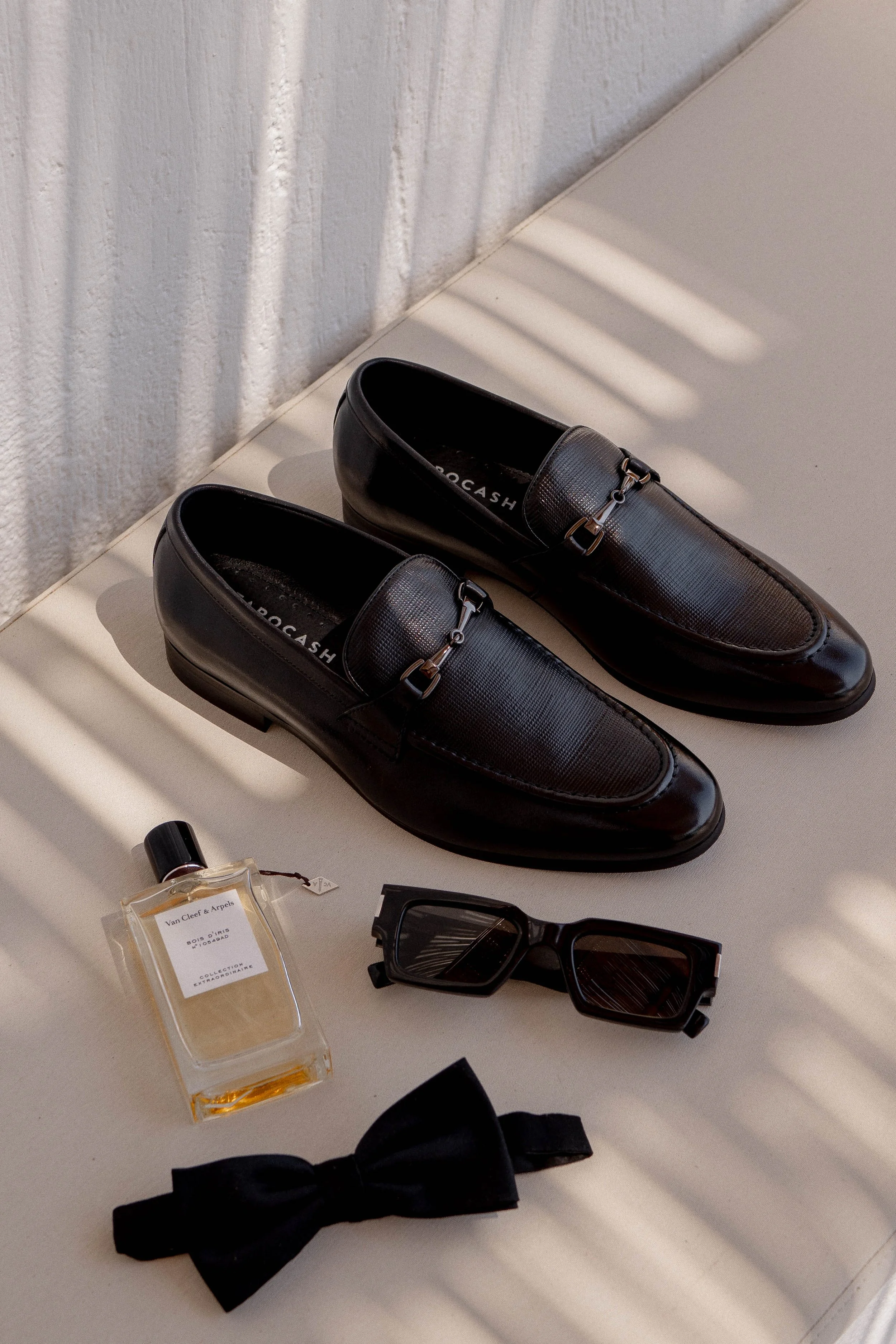 Vincent looked great in his stylish tux. He surprised me with sparkly "A" cufflinks and I thought these were the most special detail, and along with the last-minute addition of sunglasses, added the coolest vibe to our wedding photos.