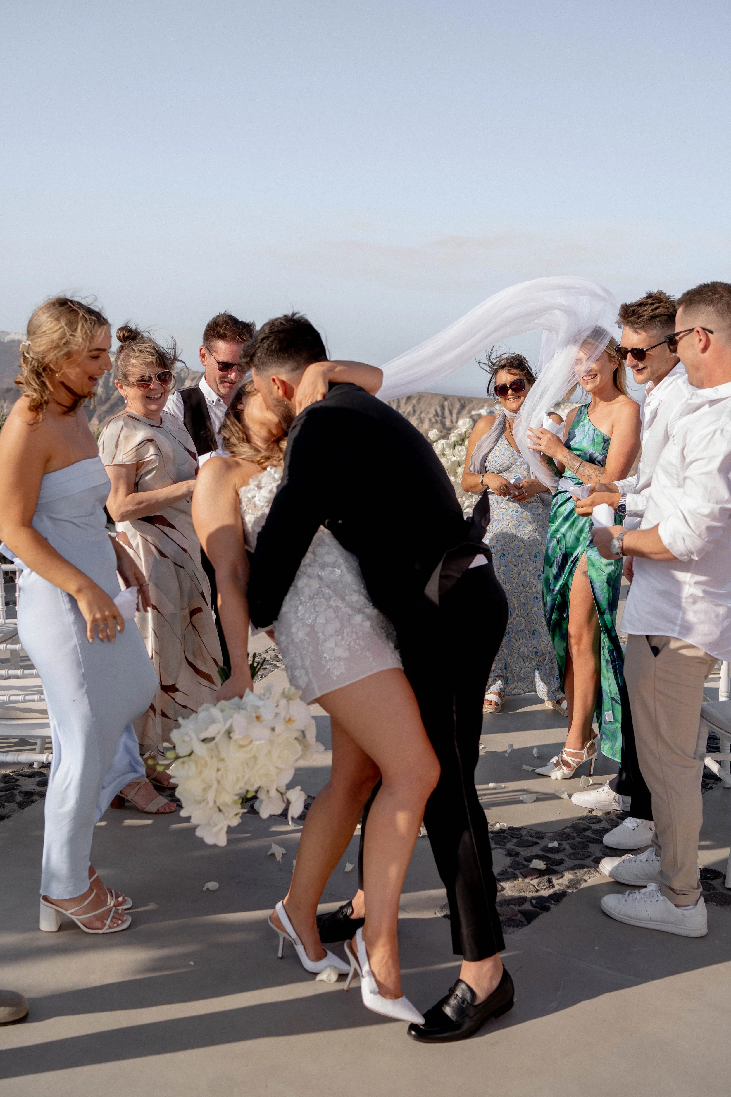 We initially planned a big wedding on Waiheke but quickly realised it didn’t feel like us. We’re both private people, and a large wedding didn’t feel right. What we really wanted was something small, personal, and beautiful. So, we decided to turn our dream wedding into a destination celebration and get married in Greece. Plus, my dad is part Greek, so it felt very fitting to get married there, and we could also have our honeymoon in the most magical place!