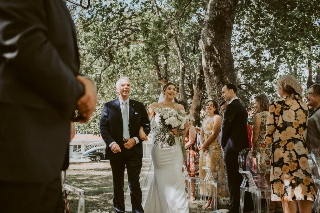 We had always wanted an outdoor wedding that was rustic and whimsical, and Rose & Smith delivered this for us, with its surrounding native bush and the grandstands. The space had a grand feel to it and the blank canvas reception room allowed us to create a vision with our florist that was unique to us. It was also fitting that our wedding was at a racecourse because Mike and I met back in 2015 at the Trentham Races and Mike's family have been immersed in horse racing since he was young.