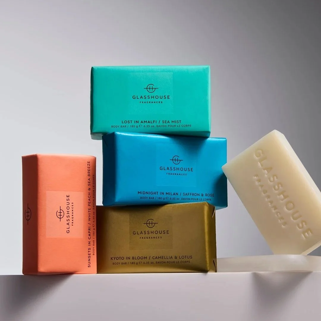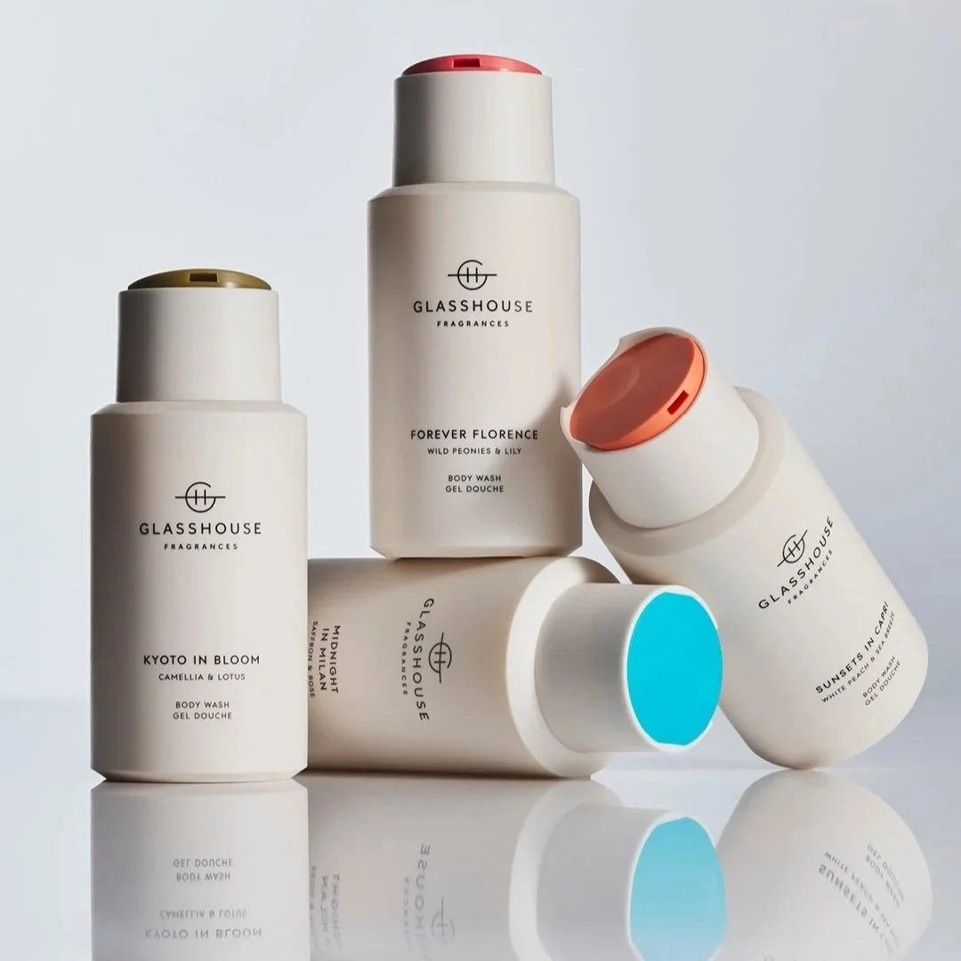 Glasshouse Fragrances all-new Body Collection, features five beloved scents that transform your daily ritual into a moment of bliss. Sunsets in Capri (White Peach & Sea Breeze), Forever Florence (Wild Peonies & Lily), Midnight in Milan (Saffron & Rose), Kyoto in Bloom (Camellia & Lotus), and the iconic A Tahaa Affair (Vanilla Caramel).