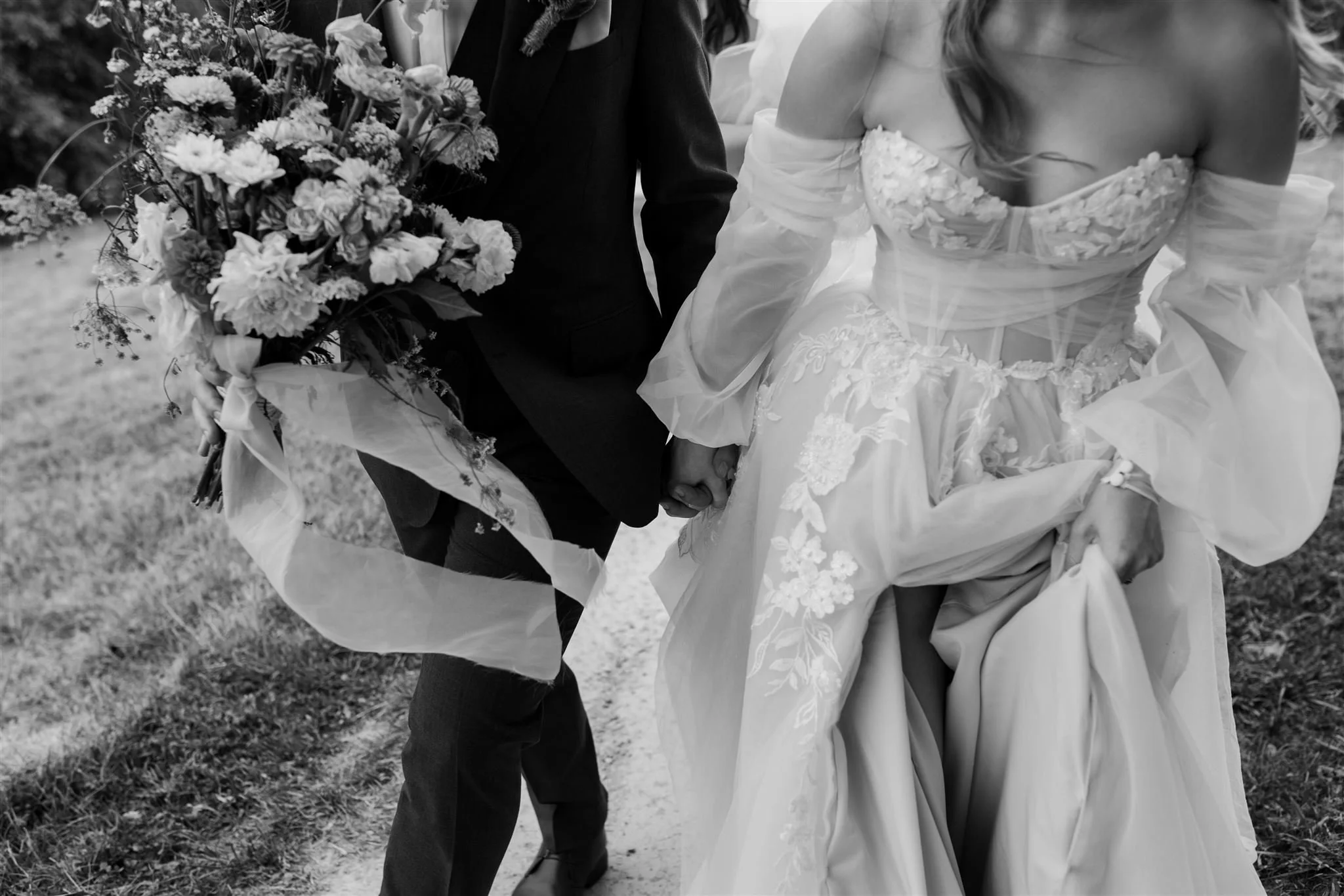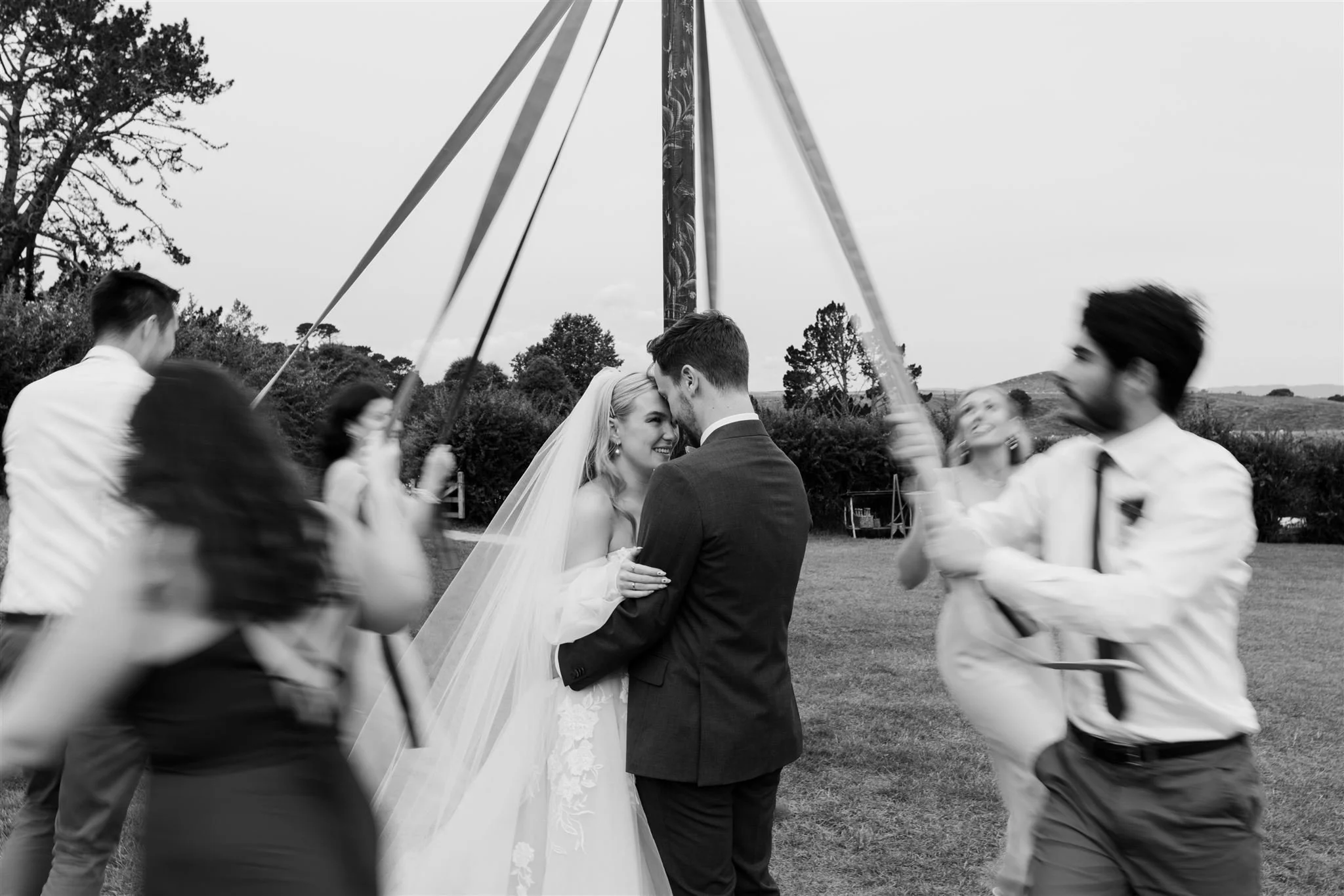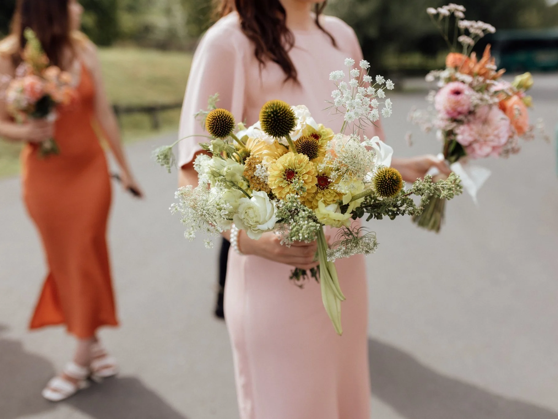 I spent many months growing a cut flower garden from scratch, focusing on dahlias, hydrangea, foliage, and wildflowers. Loved ones also contributed from their own gardens, with one special dahlia in my bouquet sourced from a bulb originally grown by my late grandmother, Kathleen. These were (very carefully!) driven up from Wellington to Cambridge in big buckets of water, and supplemented with purchases from a local flower farm. The bridesmaids and I each put together our own bouquets the night before, and you can see all of our creative personalities coming out in the way they look. Some more structured, some more loose and whimsical. It was a special part of the day to have my girls’ individual creativity captured, and it was a wonderful activity for us to share together before bed.
