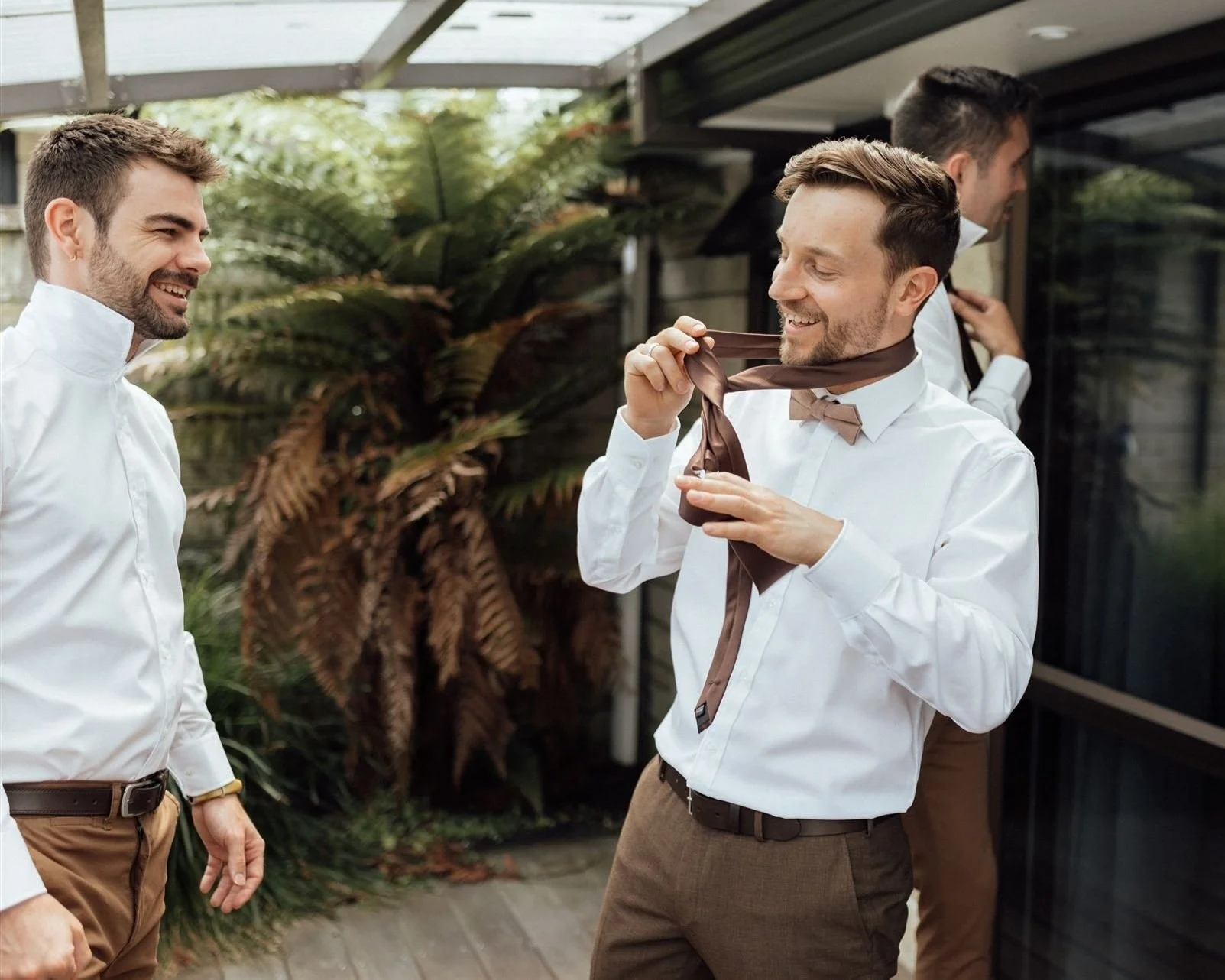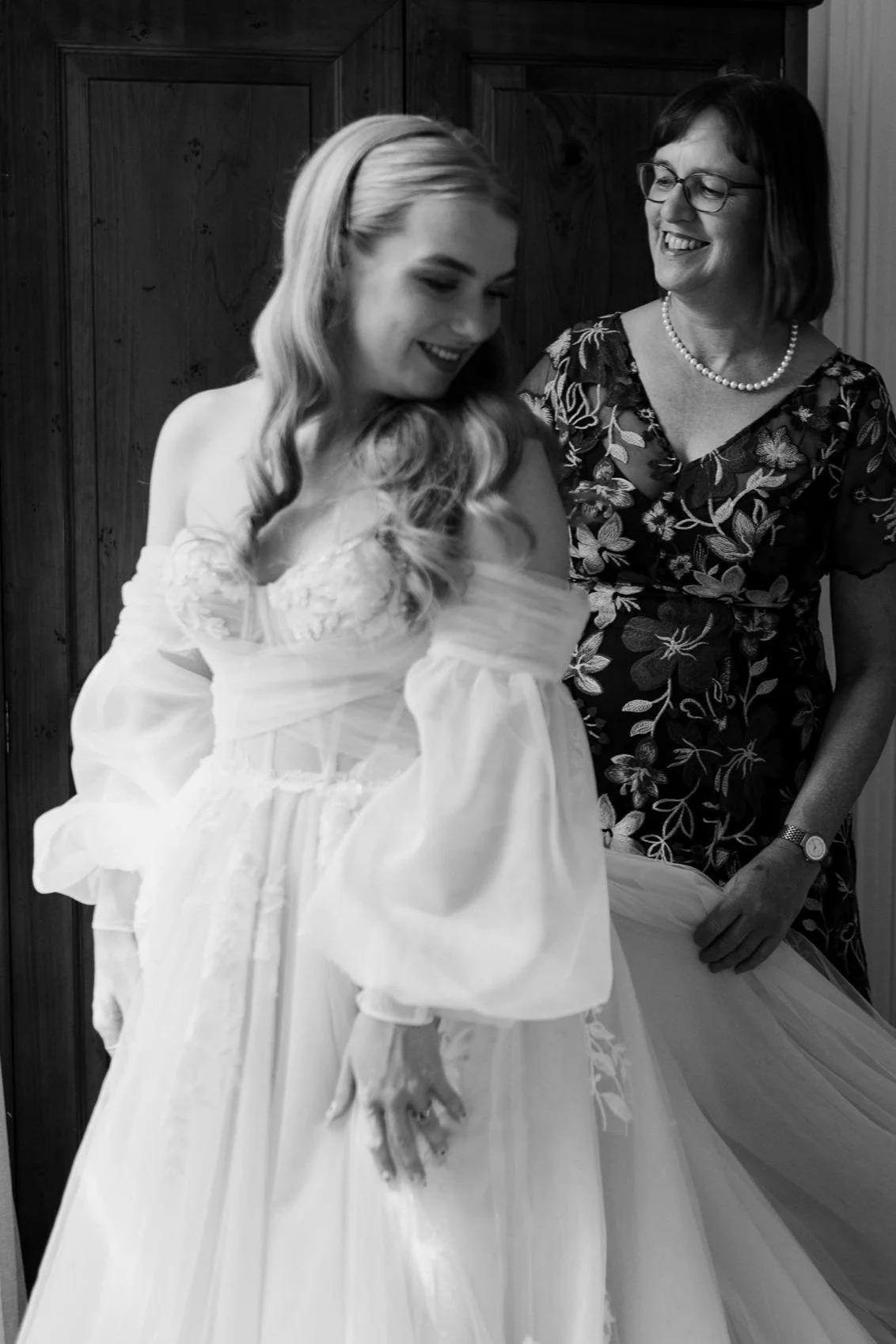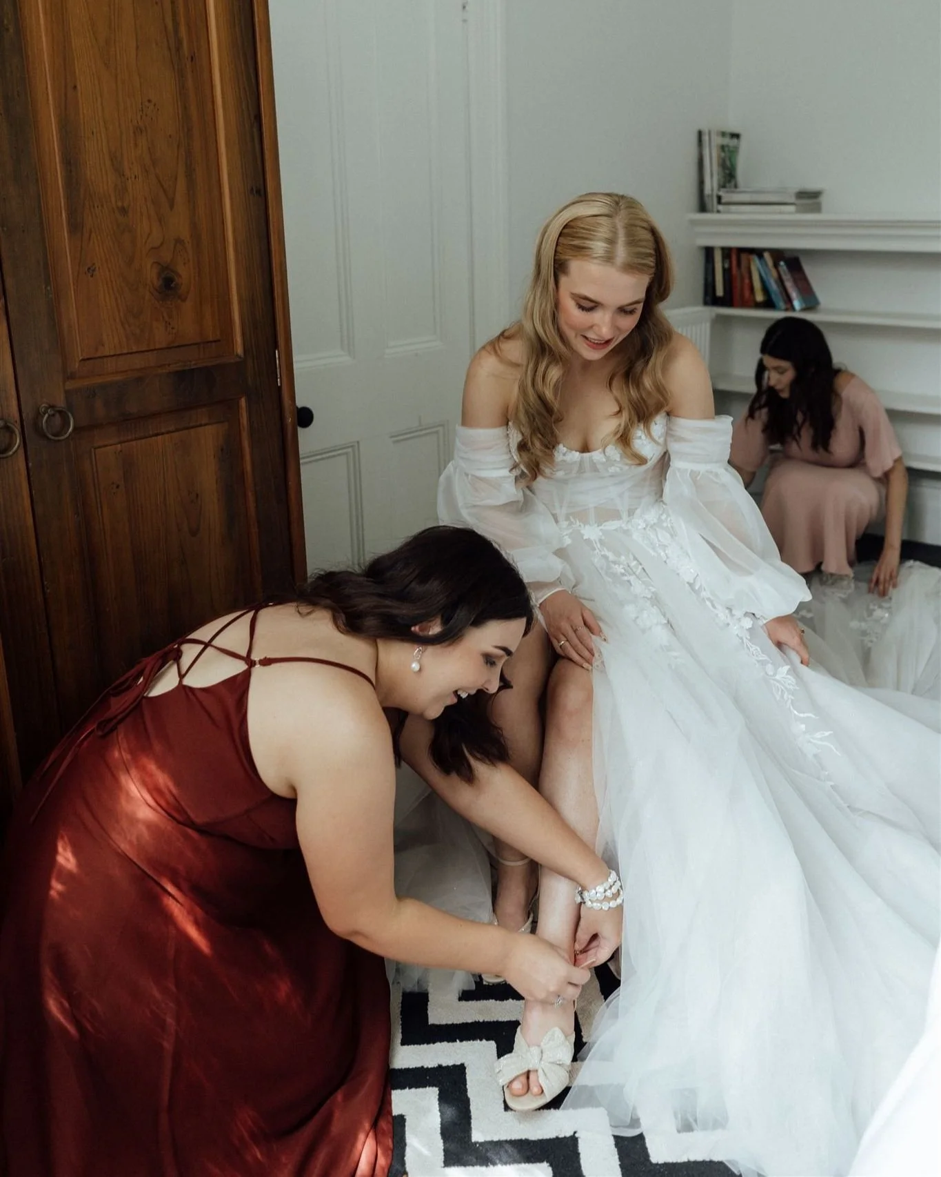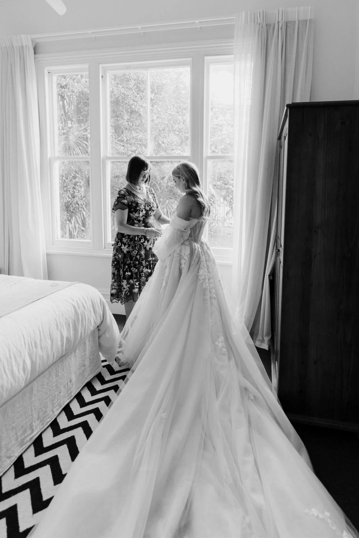 We gathered with the bridal party first thing in the morning to share breakfast - this helped us shake off some nerves and feel a bit more normal! Luke and the boys headed back to their accommodation to chill and play some backyard cricket, while the girls and I took the morning to slowly set up, get ready, and soak up the entire experience. My girls gave me a few heartfelt notes and gifts, and we video called another would-be bridesmaid that couldn’t be in the country. It was important to me that getting ready felt the same as all the times I had gotten ready with my girls before an event or night out - a mess of shared products, scattered mirrors, and an experience full of laughs, love, and helping one another.