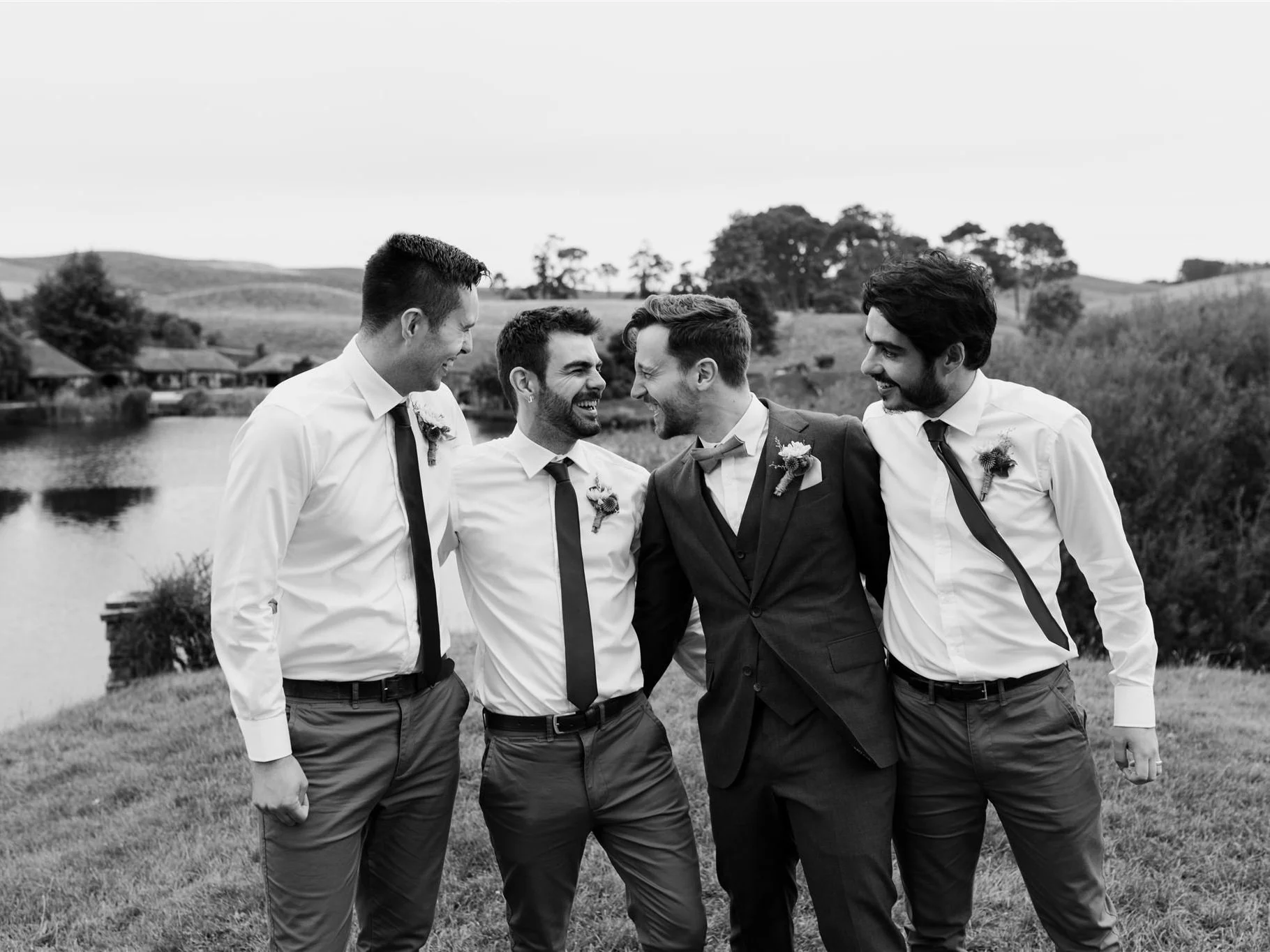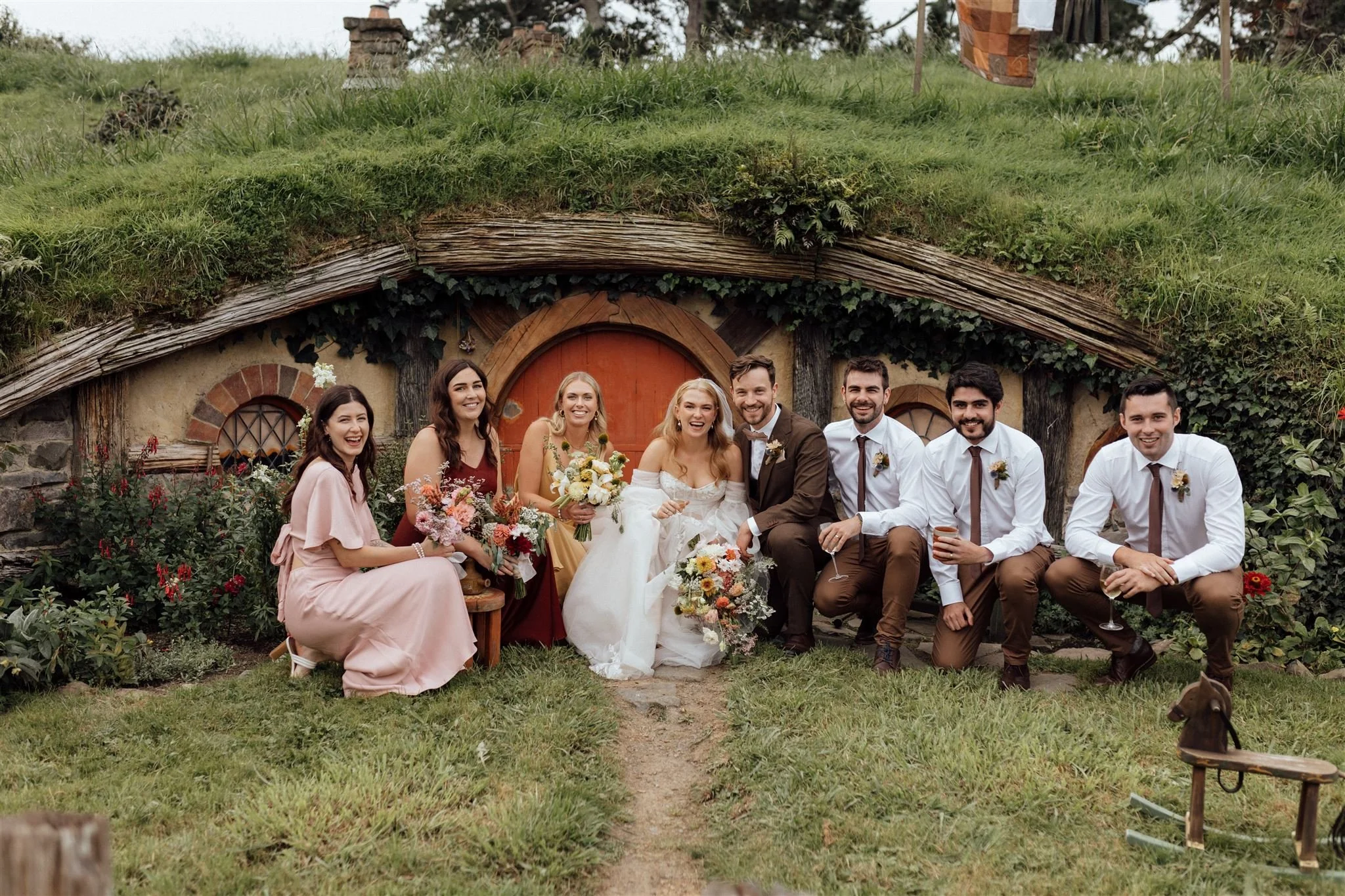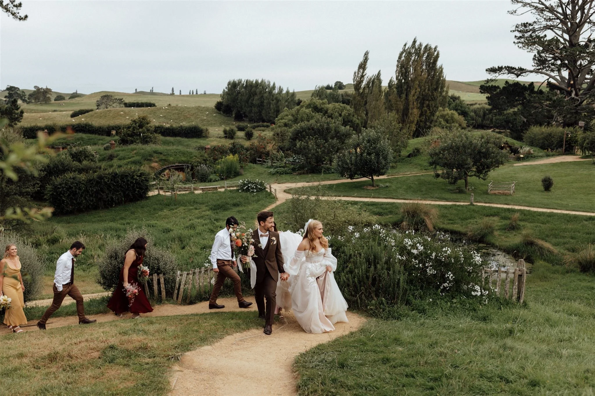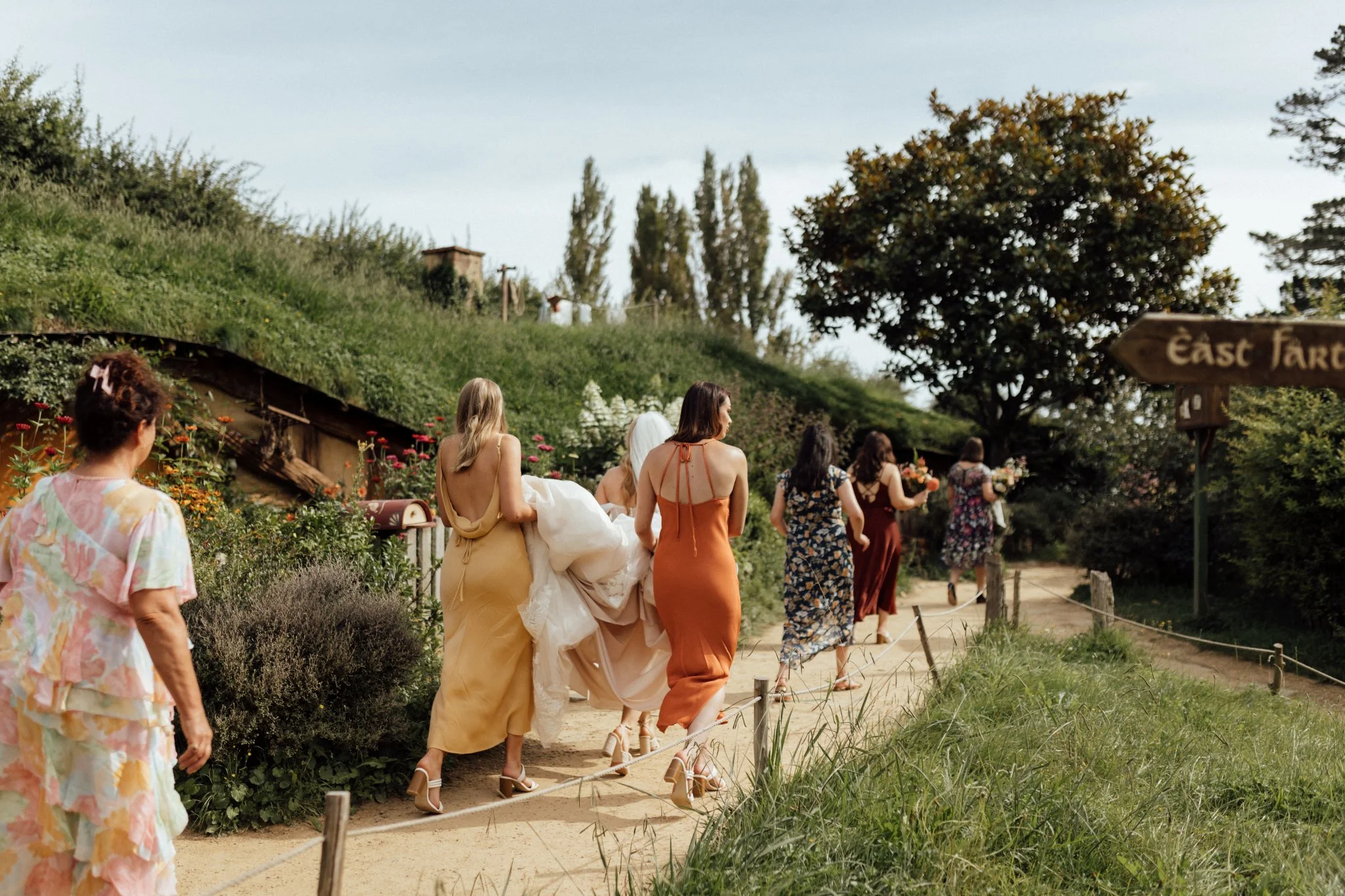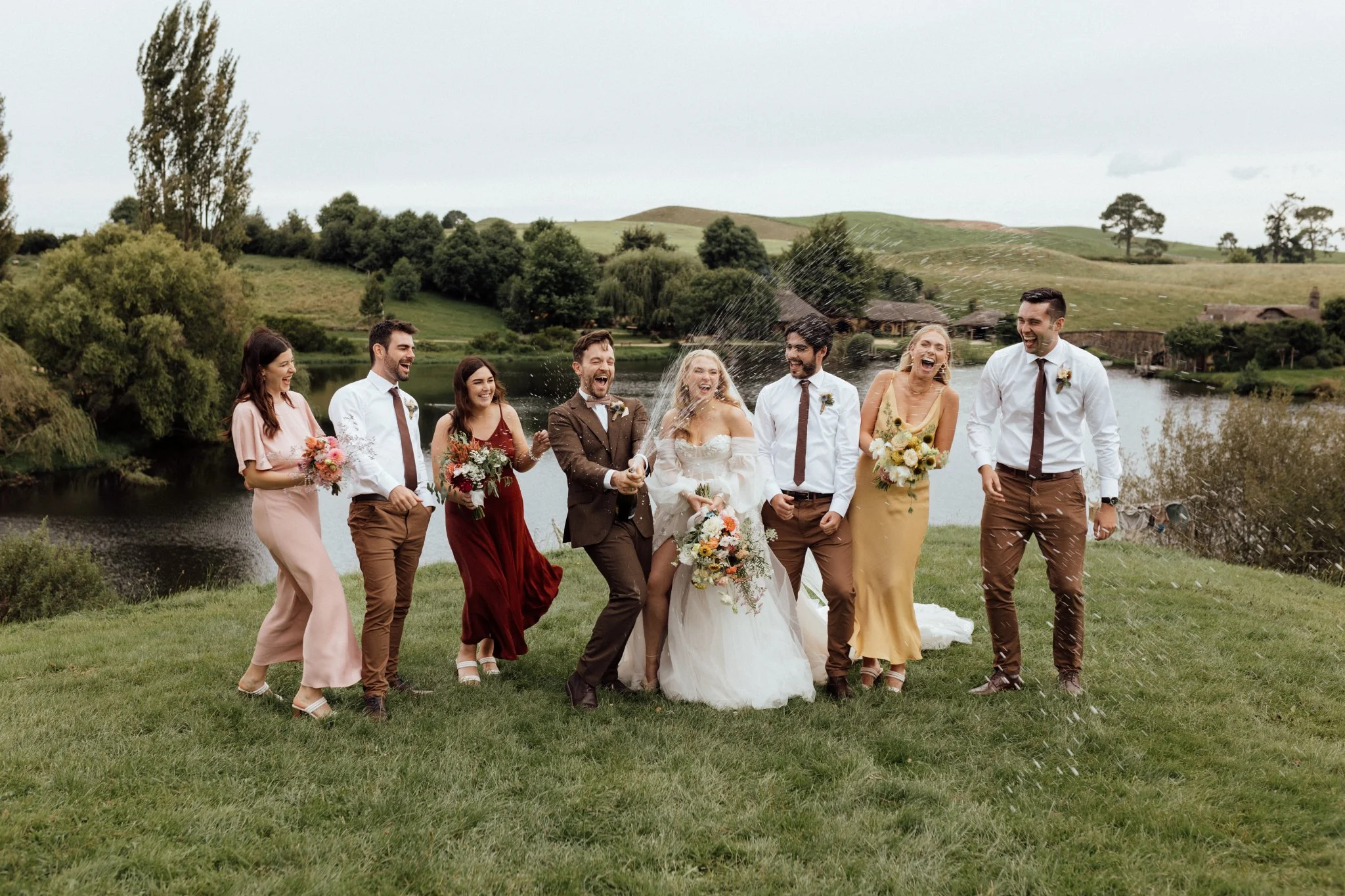 After the ceremony our guests enjoyed a full tour of the movie set, while we took our bridal party photos. It was fun as we got to experience the grounds with our bridal party at a slower pace than most of the regular tours the venue offers. We wanted to make sure we got some photos where it wasn’t immediately obvious that our venue was Hobbiton, which is unsurprisingly hard to do. Jinal absolutely nailed it with a perfect balance of shots that embrace the venue, and shots that left it more subtle to focus on us!