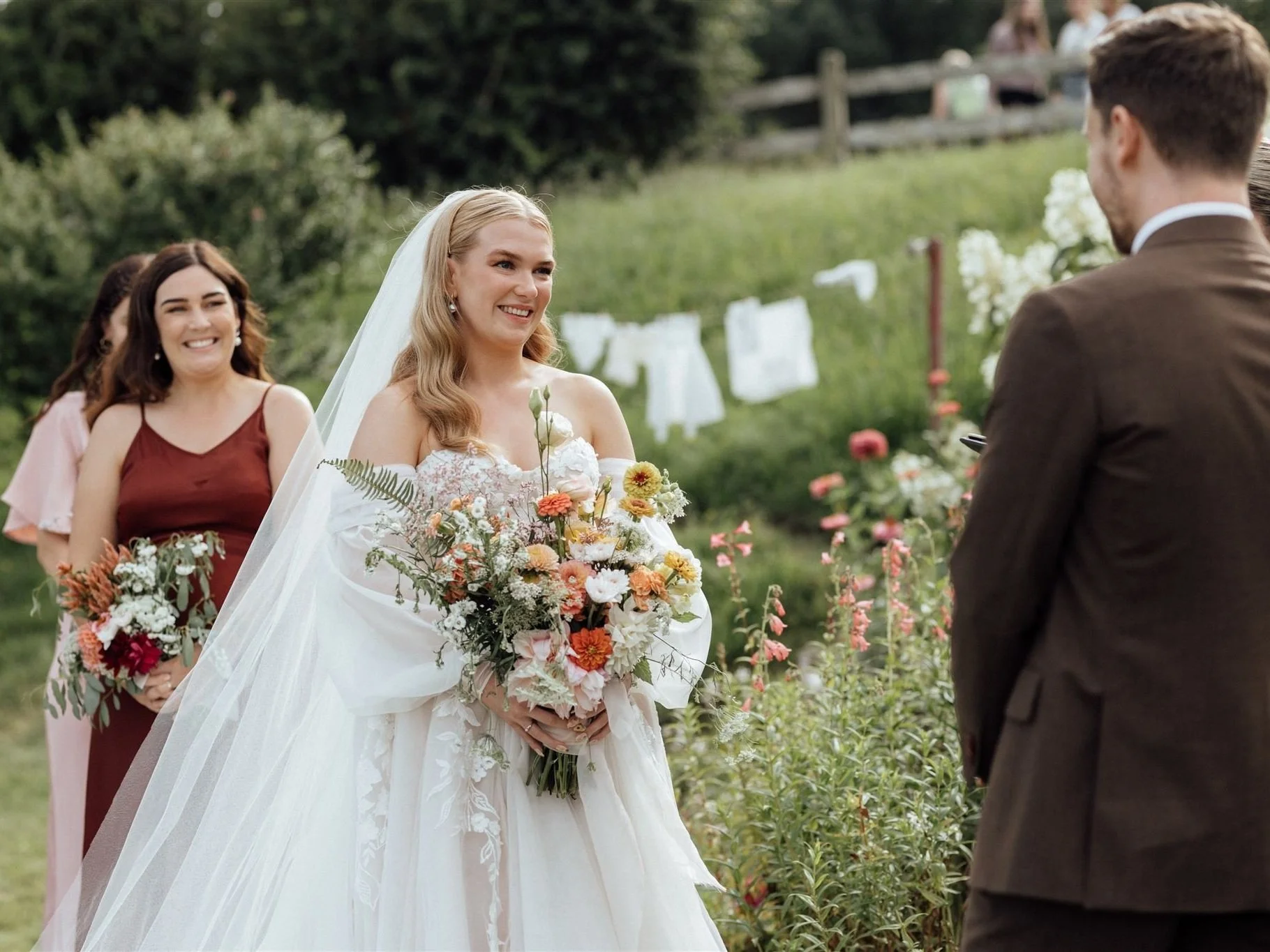 Our ceremony was in the Hobbiton gardens, which was alive with bees and butterflies amongst the flowers, and trees heavy with fruit. I walked down the aisle to a guitar cover of Concerning Hobbits, which now causes us both to get very emotional when it plays in the films!
