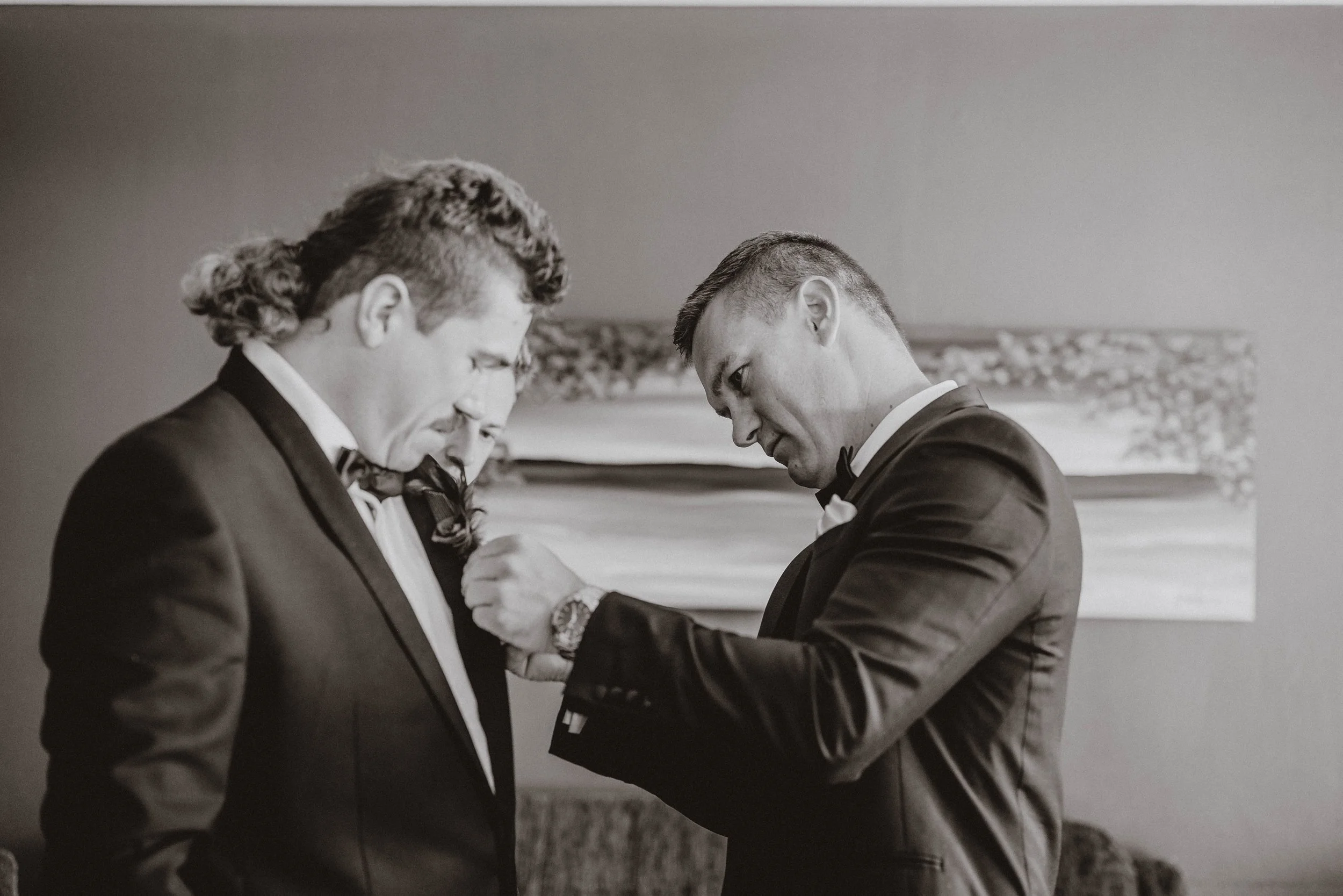 Groom/groomsmen/bridesman attire: Frank Casey Suit Hire