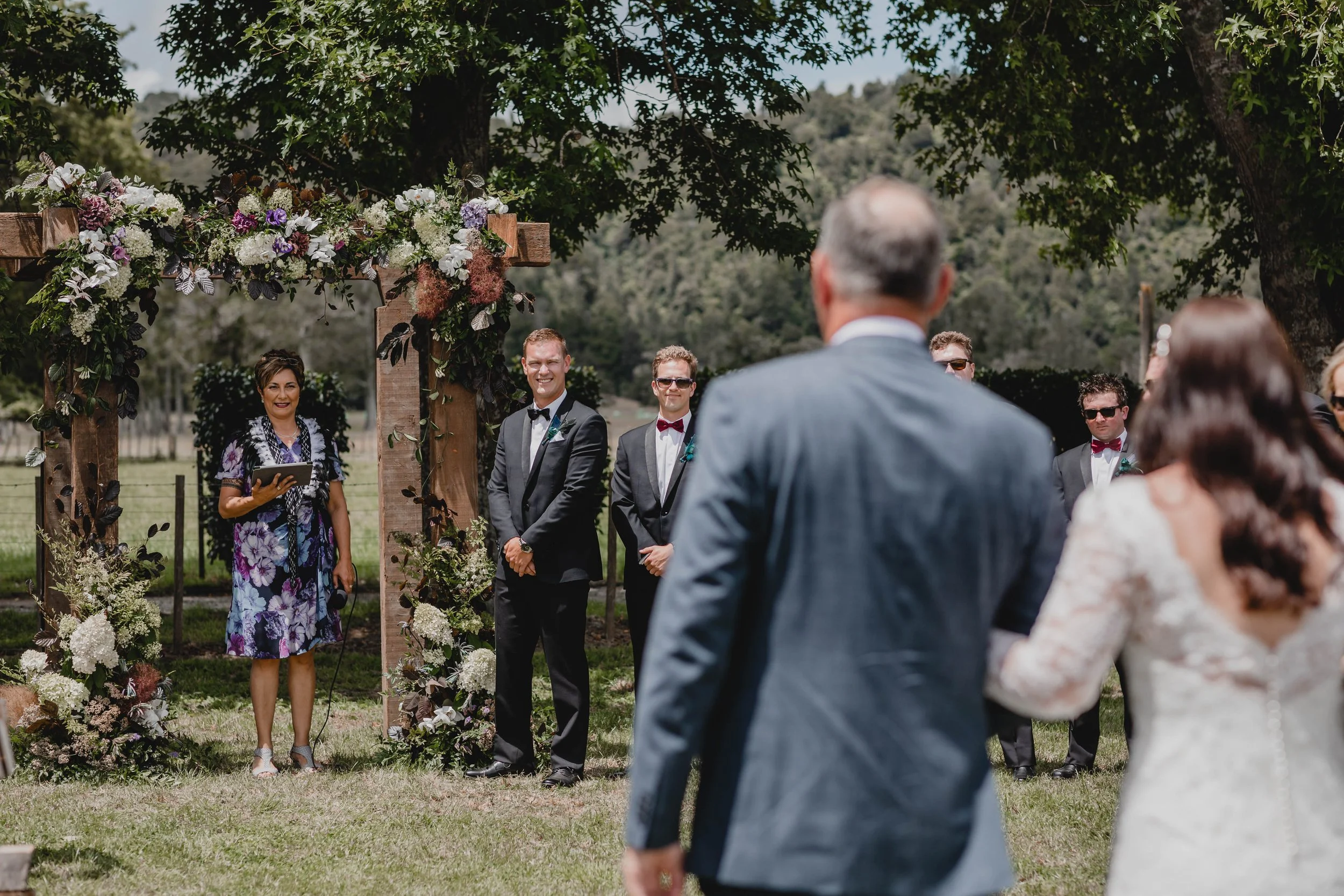 ‘The Paparimu farm has been in Ryan’s family for six generations (since 1869) and is a very special place for us. We decided to have our whole wedding held there, where I grew up. We had the Paparimu community involved in the prepping, set up, mowing and clean up. Neighbours and friends came out on ride on mowers and tractors a week before the wedding to give us a hand. Without everyone involved, the day wouldn't have been possible.’