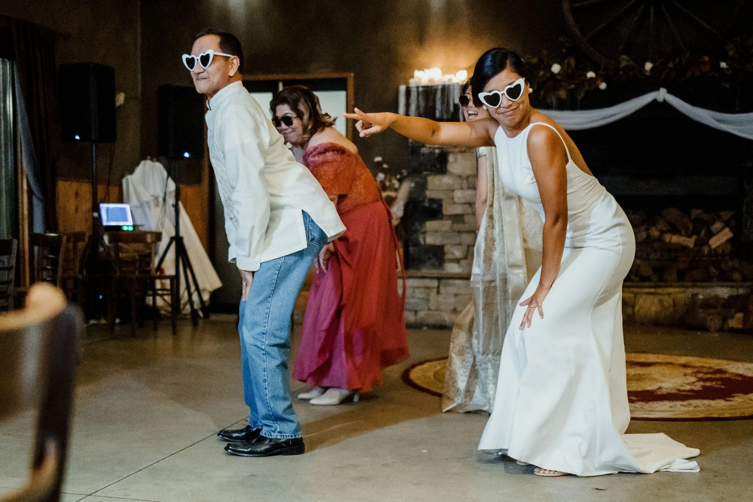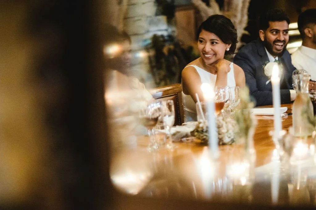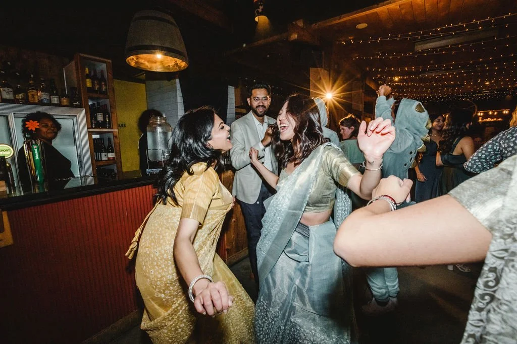 Each centerpiece was lovingly crafted by us, blending elements from both of our cultures. Our guest book was truly unique - a Jenga set adorned with heartfelt messages from our loved ones. As we entered the reception, the upbeat Tamil song "Vaathi Coming" from my favorite movie, Master, filled the room and set the tone for a joyous celebration. Our first dance to Jac Ross's acoustic rendition of Celine Dion's "Because You Loved Me" was a tender moment that we'll cherish forever. The highlight of the evening was the lively father-daughter dance; my dad and I started with Edamame, and to my surprise, my mom and younger sister joined in, creating an unforgettable family memory. Seeing Gokul's parents enjoying themselves and dancing freely brought us immense joy; it was a side of them we had never seen before.