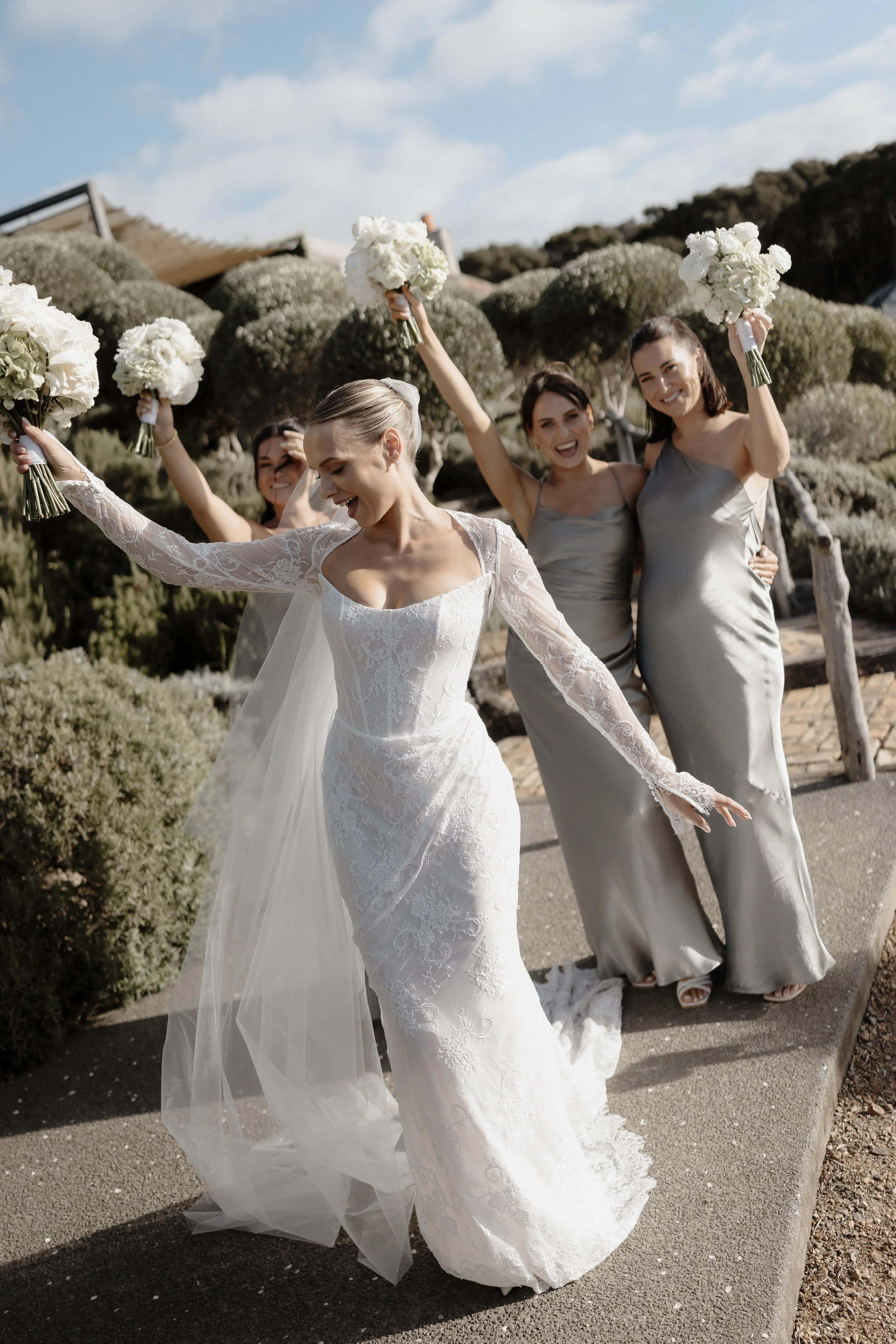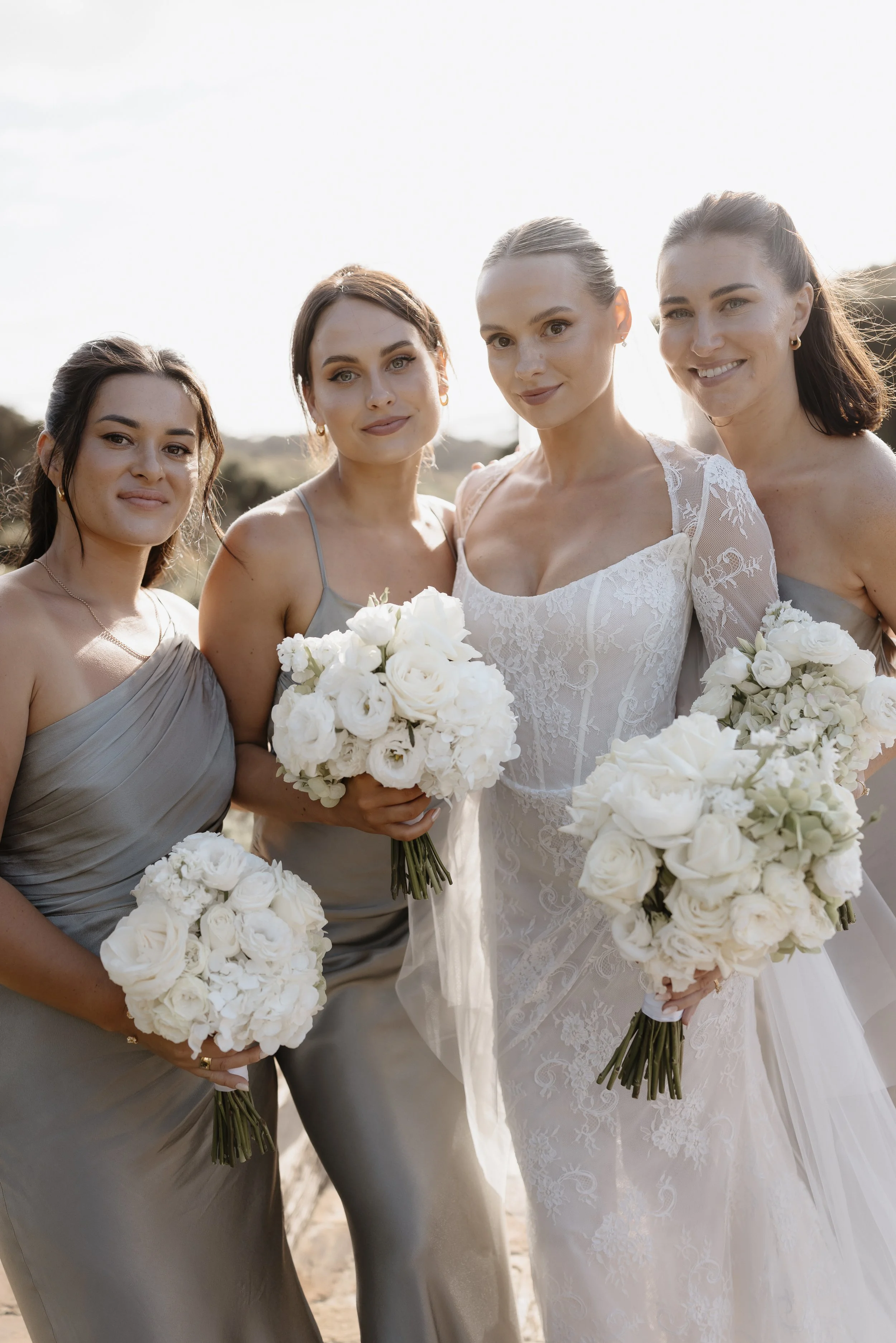 I had three bridesmaids and a flower girl, and I wanted them to feel comfortable and confident in their dresses, so I let each of my bridesmaids choose their favourite style from Shona Joy. I selected the colour sage, as it perfectly complemented the theme and venue, creating a cohesive and elegant look for the day.