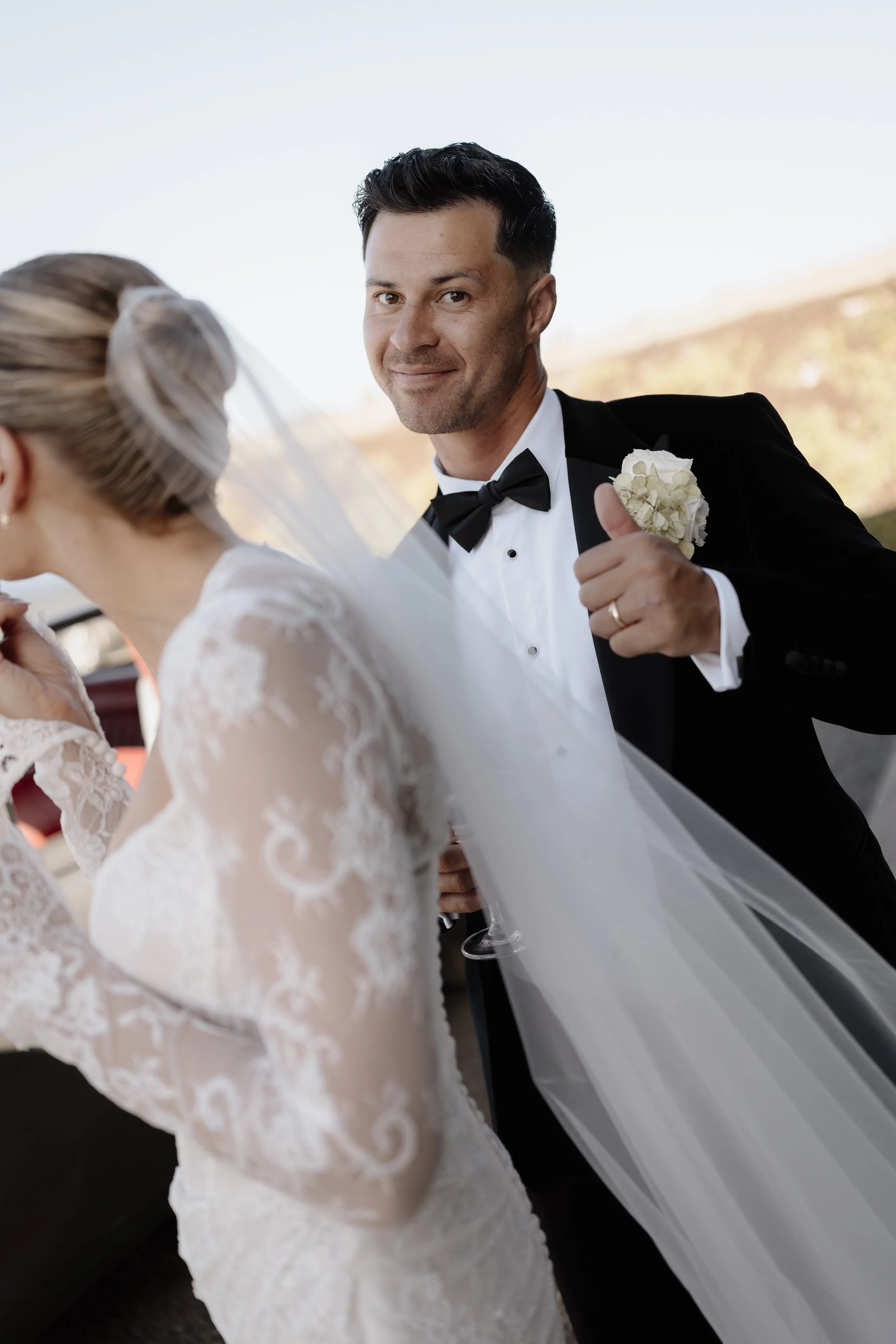 The ceremony felt especially meaningful to us. Standing there together, surrounded by all our loved ones — many of whom had travelled from across the world — was truly overwhelming in the best way. Seeing so many important people in one place, all there to celebrate with us, was a feeling we’ll never forget. We handpicked our celebrant, who has a connection to New Zealand and Samoan heritage, and we wrote our own personalised vows, which made the moment truly special.