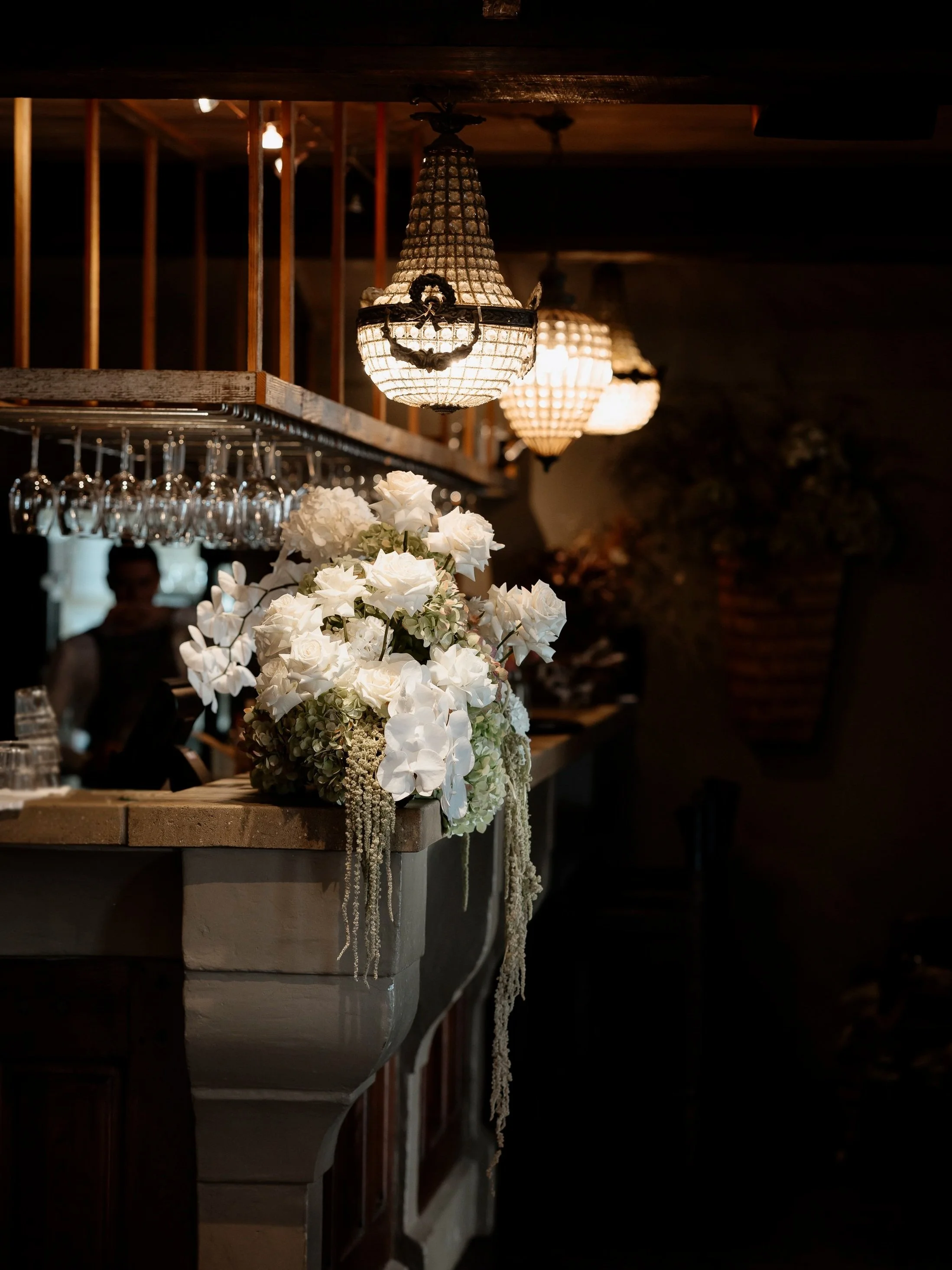 The reception space was designed to evoke an elegant and timeless ambience. We kept the colour palette classic with whites and greens, incorporating my favourite flowers - hydrangeas and roses throughout. The stationery was minimal and refined, while candlelight added warmth to the space. Subtle textures, like ribbon-accented table numbers and French linen tablecloths, added a thoughtful touch without feeling overdone. Since the venue already had so much character, we focused on complementing its natural beauty rather than overwhelming it with decor.