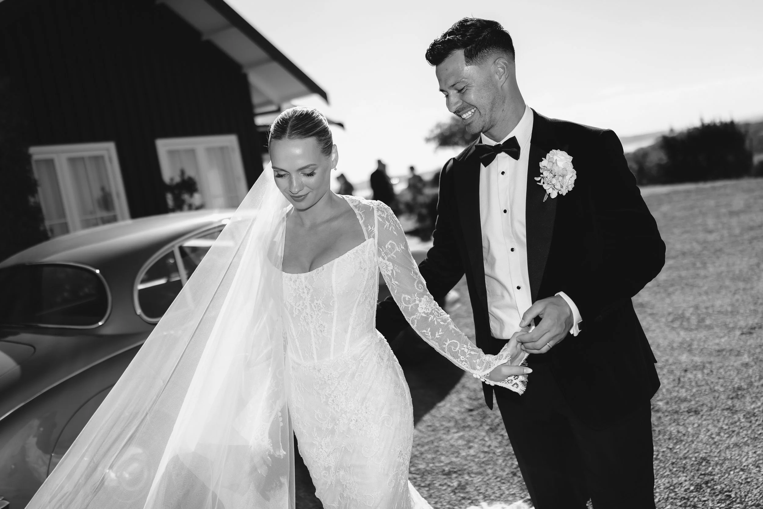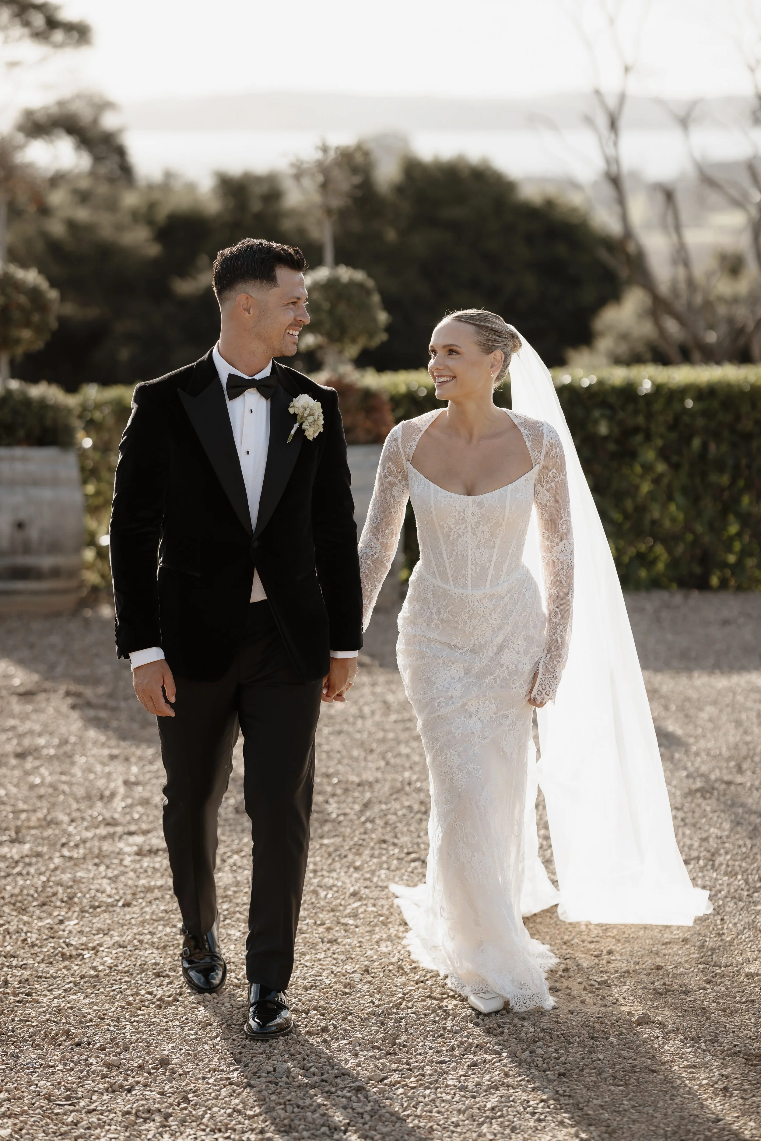 Natalie and Joshua’s love story, spanning eight years and two continents, culminated in a breathtaking wedding at a Waiheke vineyard that beautifully blended their New Zealand and English cultures. Embracing their diverse traditions, the couple created a romantic and elegant atmosphere as they celebrated their love amidst the stunning backdrop, candlelight and classic colour palette. Natalie shares details from their stunning day…