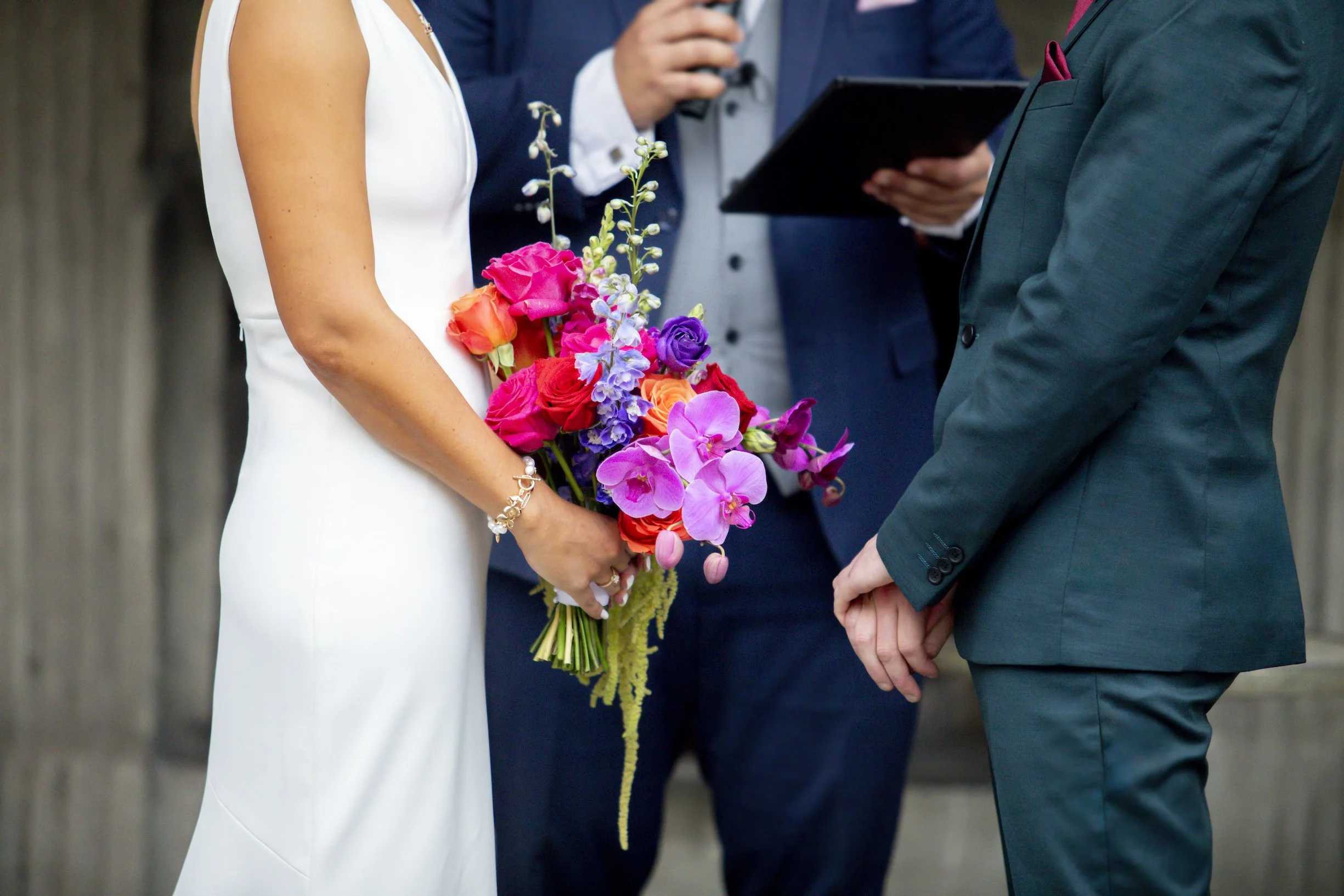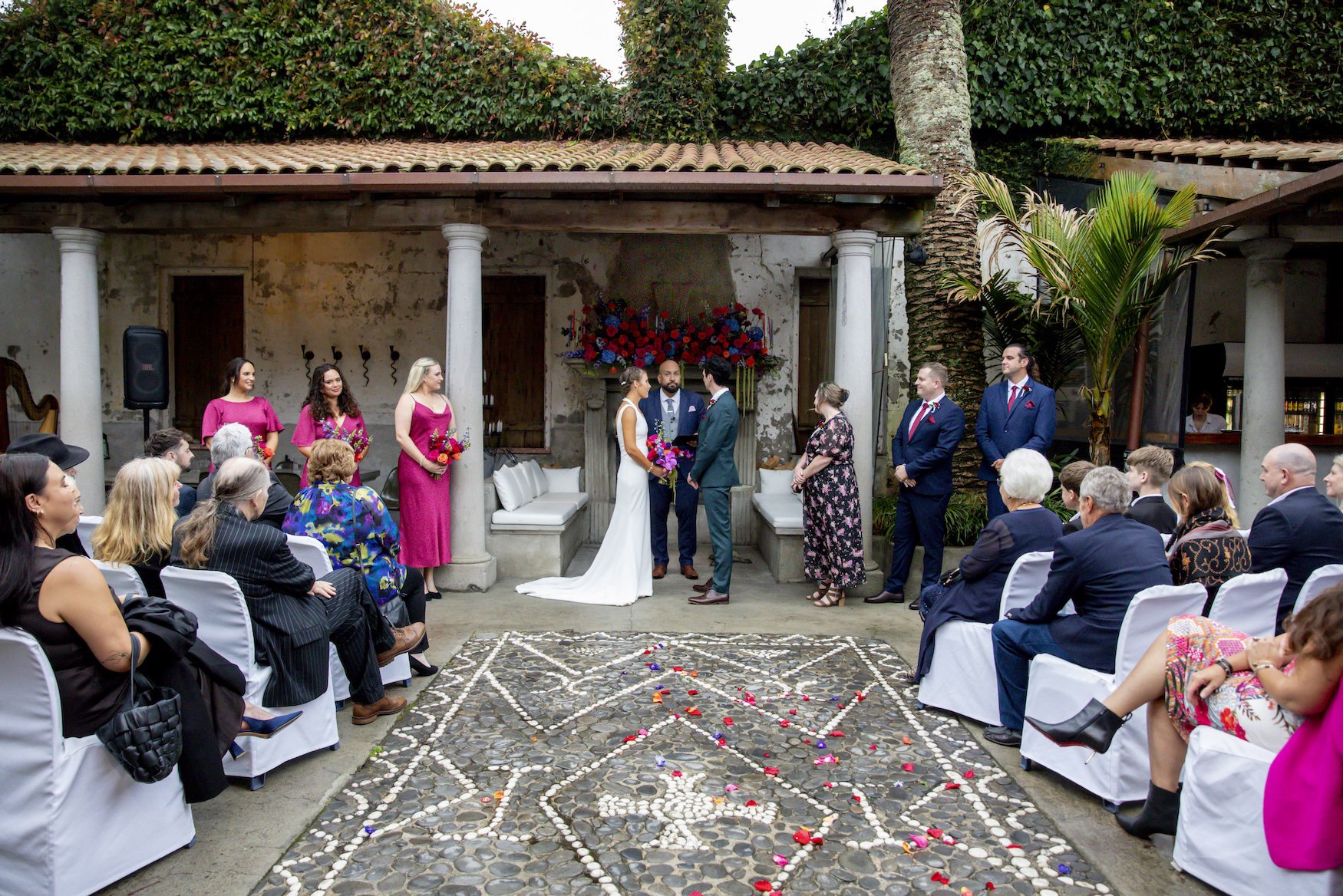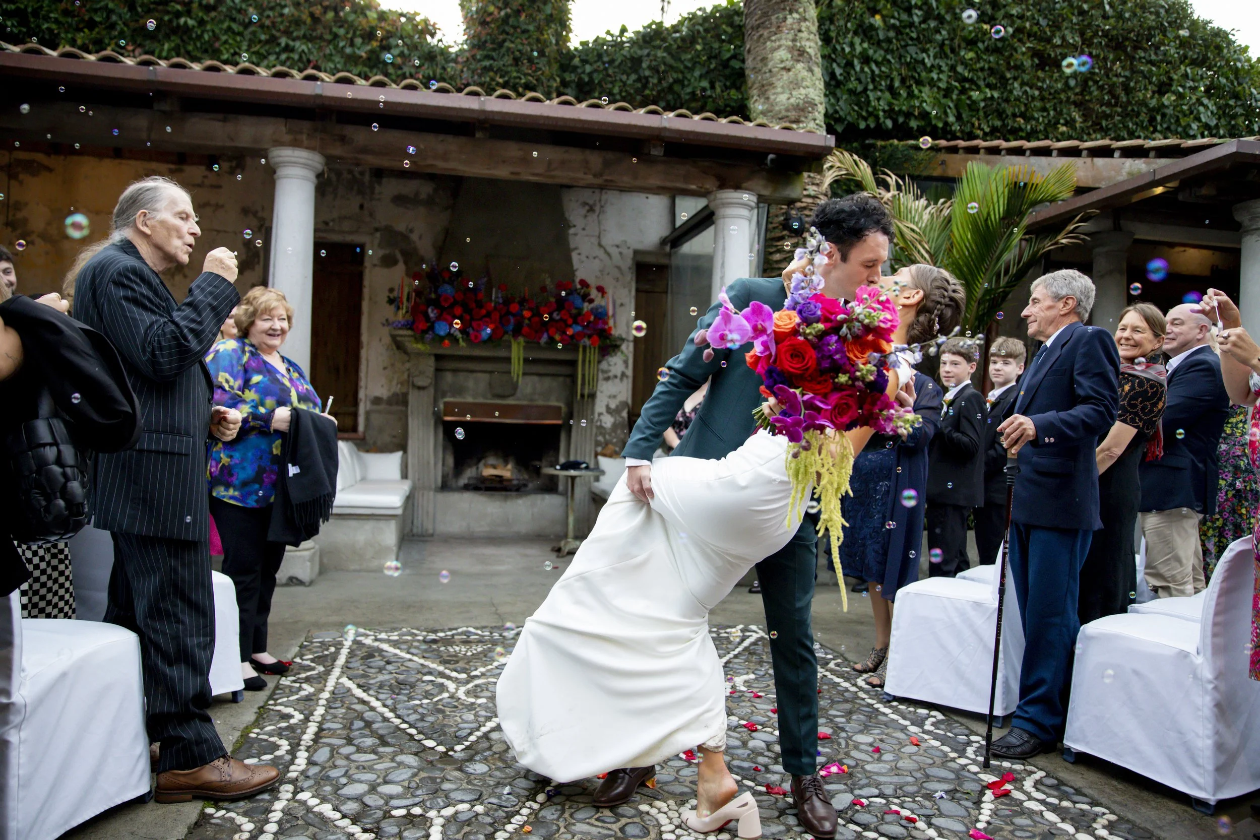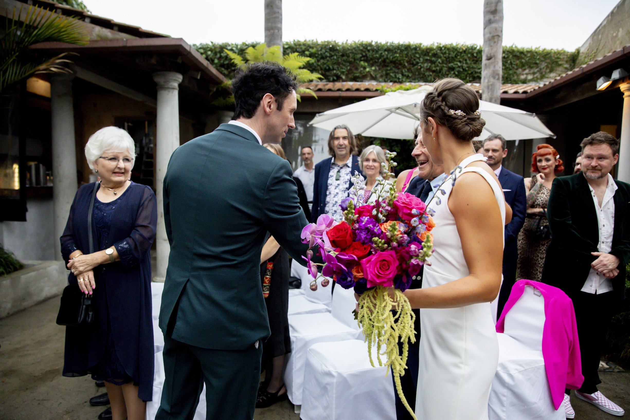 Our florists, Wild Blooms, exceeded every expectation with gorgeous installations of colourful flowers. Our guests clearly embraced the vibe too — everyone dressed brightly, and the photos absolutely radiate the colour and energy we wanted.