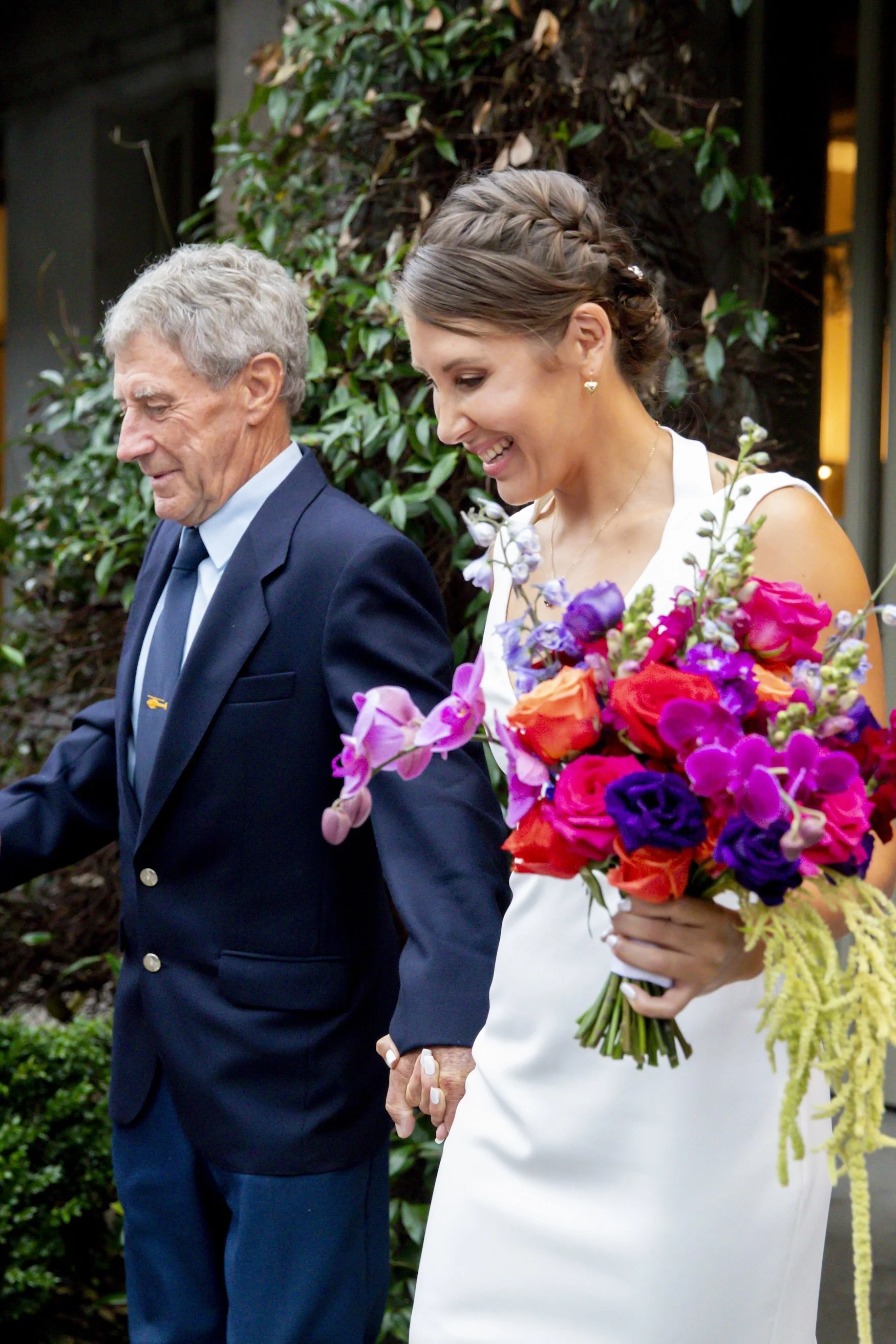 I walked up the aisle with my dad to “Something” by The Beatles played on the harp. My dad is a tetraplegic, but with the help of a cane — and sometimes a little support — he still “walks”. I often joke that it was actually me walking him down the aisle, but sharing that moment together is one of my most treasured memories.