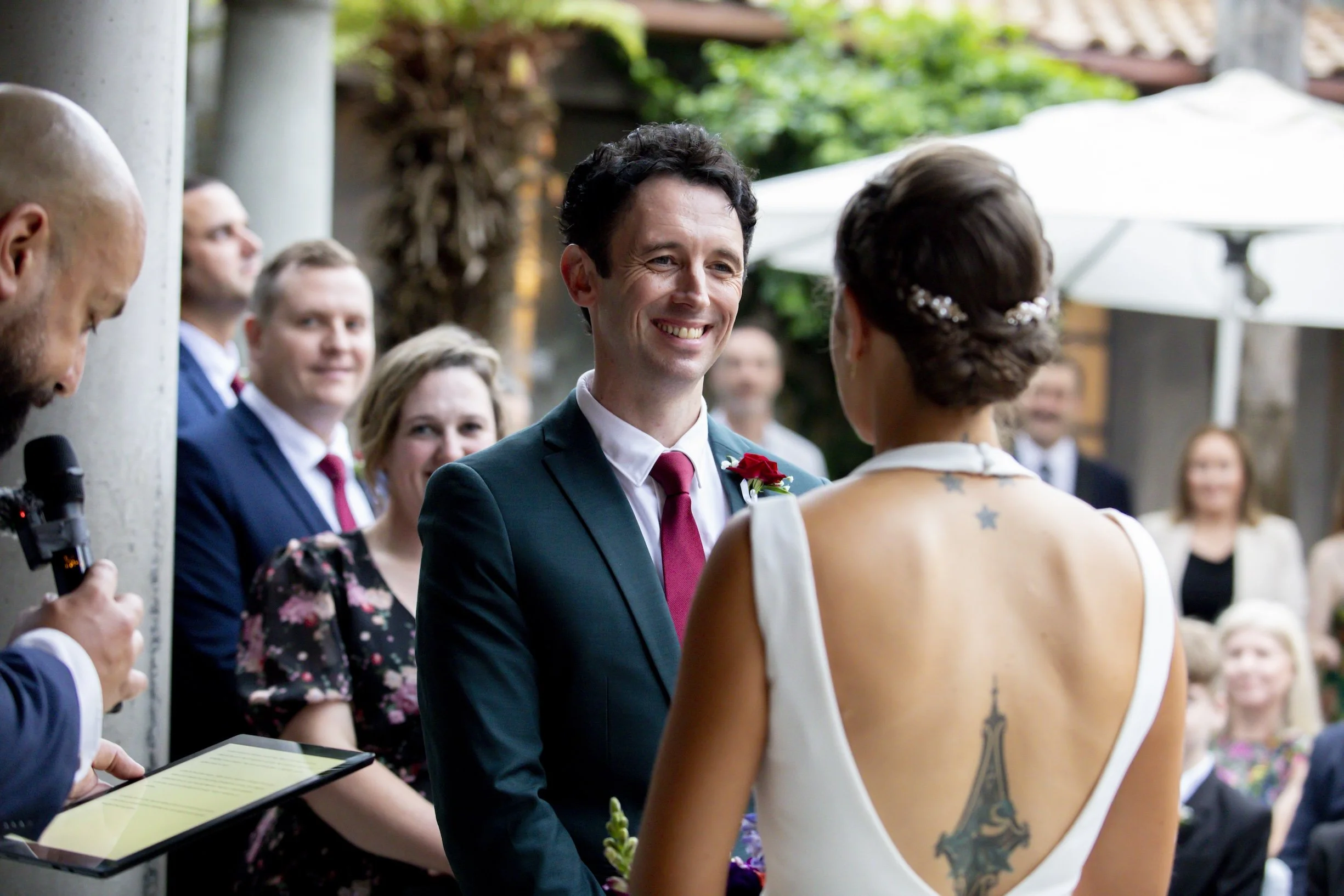 Our celebrant and MC, Nate Dunn, had the job from the moment he said, “The bride usually does all the work — I want to look after her.” Music to my ears. We didn’t have a planner, so Nate was invaluable. Even when Dan misspelled my middle name on the marriage certificate (his one job), Nate calmly fixed it.
