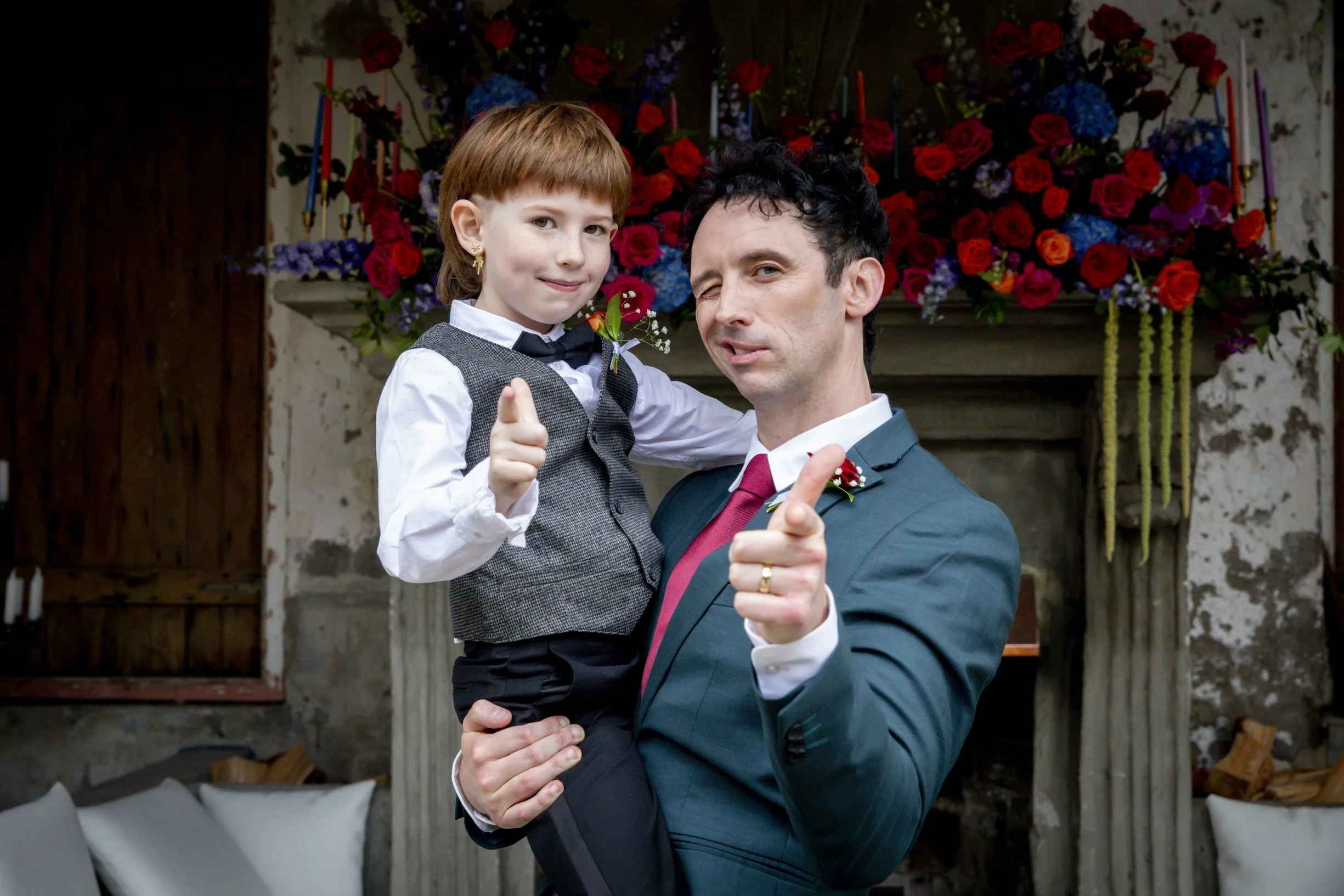 We did it to put everyone at ease, because we thought it was funny, and mostly because of how uncomfortable it made Dan! More importantly, it was lovely for their son to see us all together — he still talks about what a great time he had and asks when we can have another wedding.