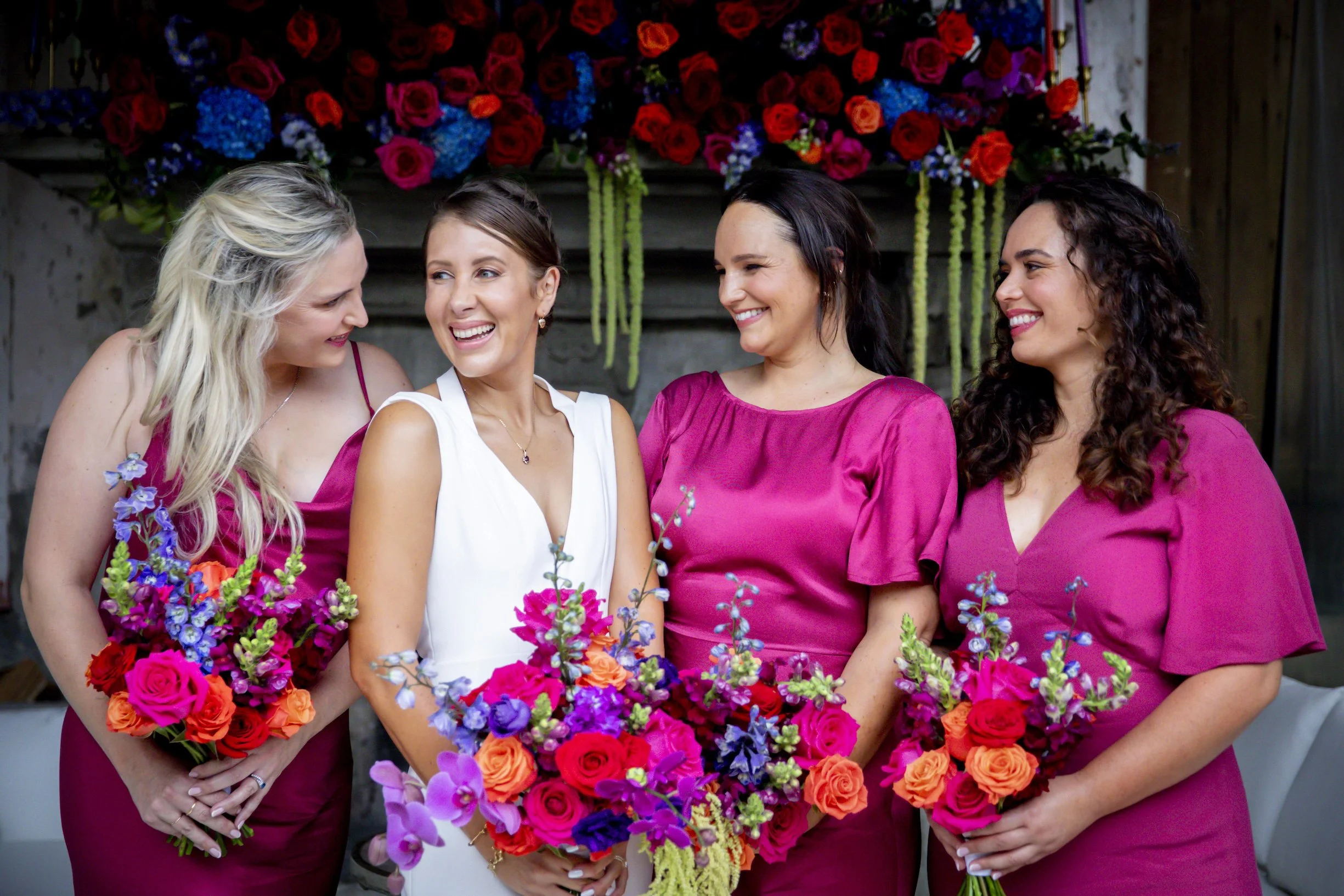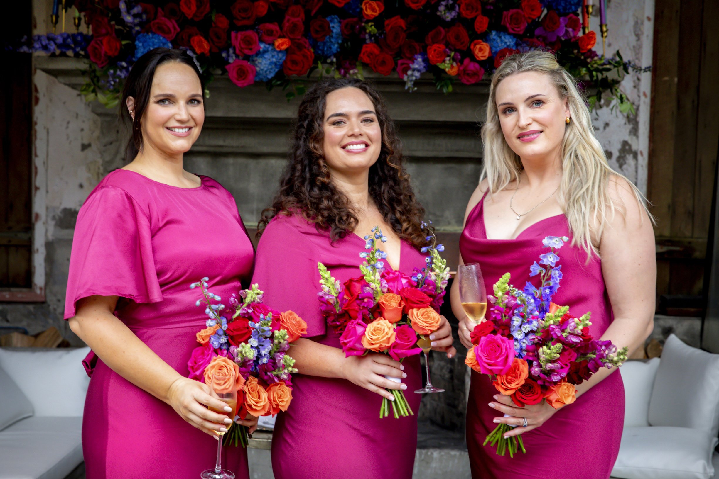 My bridesmaids wore Blak Bridesmaids in “Pink Intense,” a last-minute decision that I still love. They each chose their own style, wore black shoes, and looked amazing — comfortable, confident, and completely themselves.