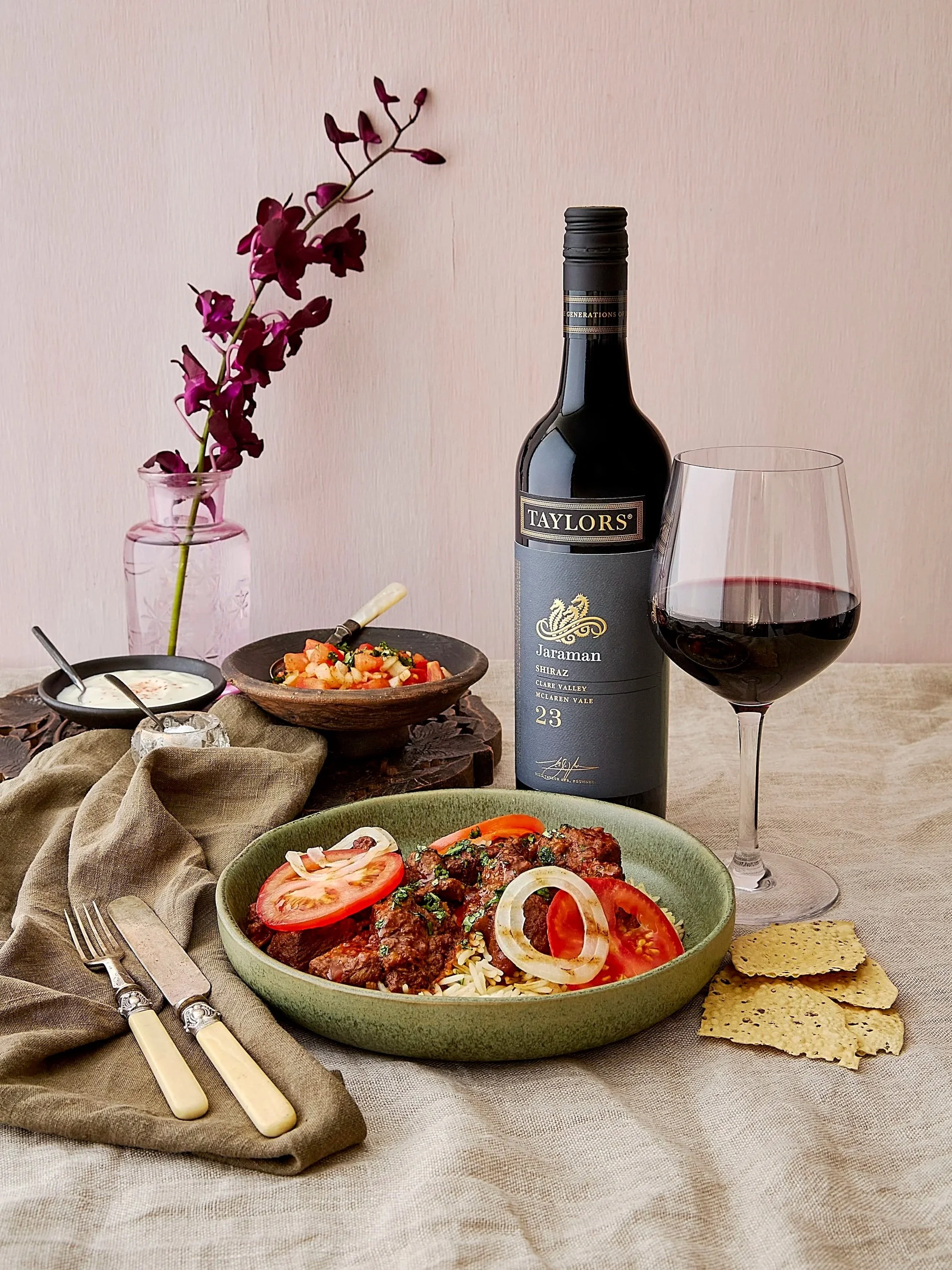 Two worlds collide — and the flavour is unforgettable. Cookbook author Ashia Ismail-Singer has created two perfect dishes to pair with award-winning Taylors Jaraman Shiraz 2023