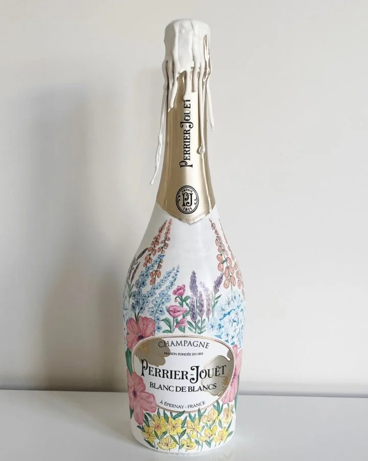 A hand-painted bottle for the celebration champagne is the perfect, personalised keepsake for your special day. Every bottle is unique and especially painted just for you and turns a bottle into a beautiful piece of art and will become a keepsake and treasured as a family heirloom. Add special flowers, a monogram, dates, or calligraphy to make your bottle extra special.